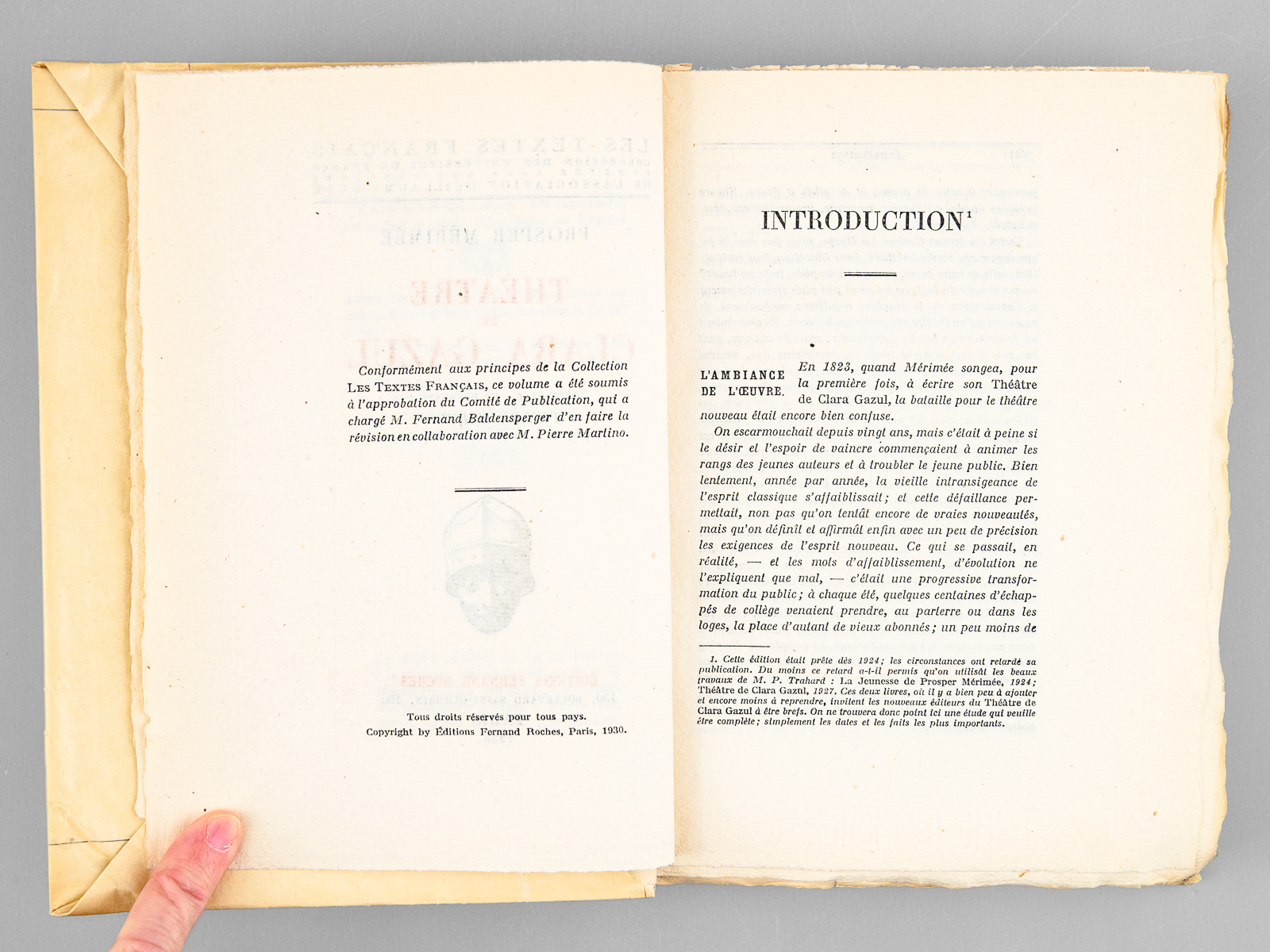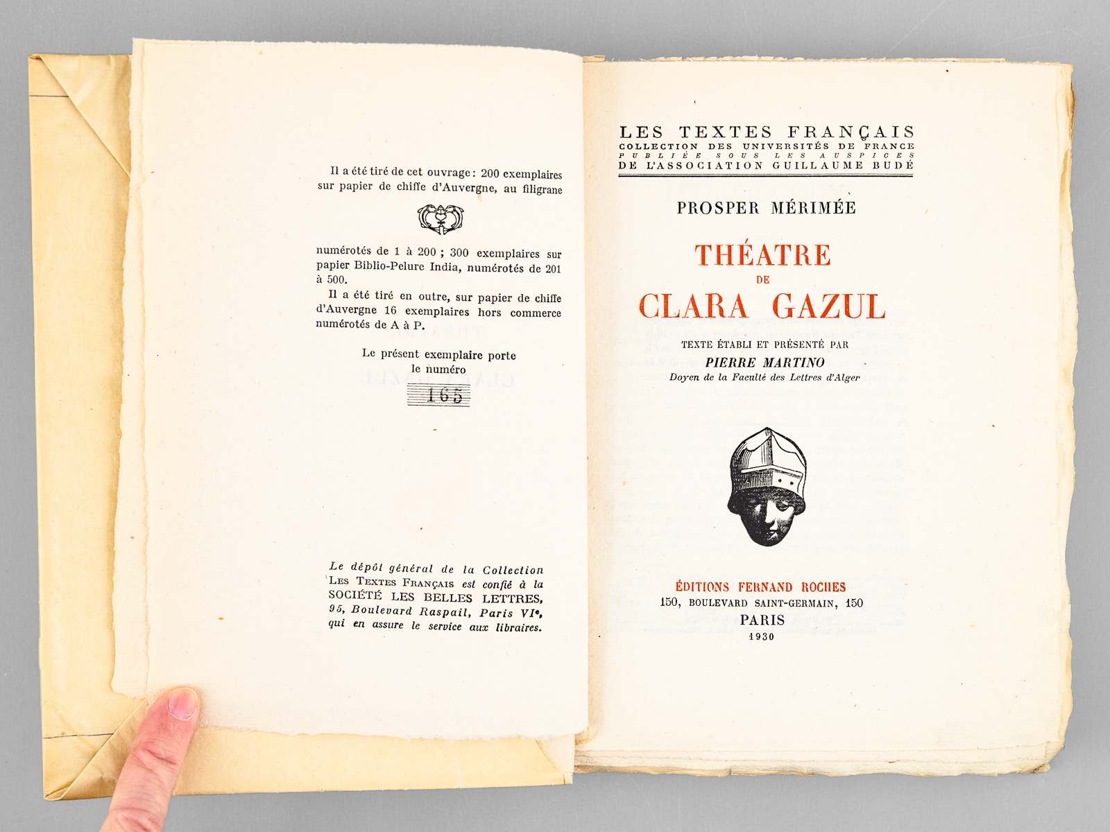 Un des 200 exemplaires sur papier de chiffe d'Auvergne (n° 165), 1 vol. in-8 br. sous couverture rempliée, coll. Les Textes Français, collection des Universités de France, publiée sous les Auspices de l'Association Guillaume Budé, Editions Fernand Roches, Paris, 1930, 454 pp. Commentaire : Bon exemplaire du tirage de tête sur papier de chiffe d'Auvergne.