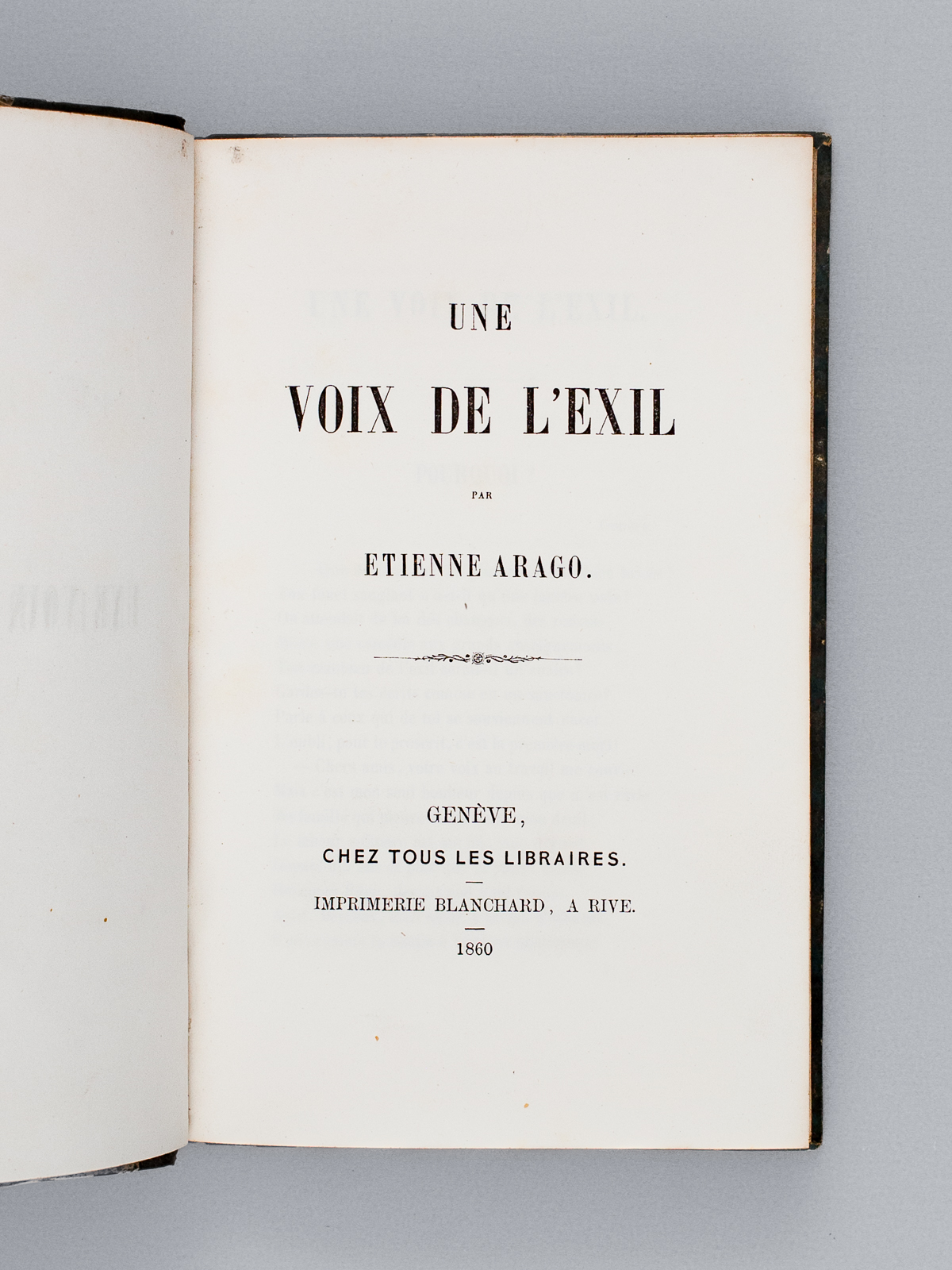 1 vol. petit in-8 reliure de l'époque demi-chagrin vert, dos à 4 nerfs orné, Chez tous les Libraires, Genève, Imprimerie Blanchard à Rive, 1860, 2 ff. 294 pp. Commentaire : Bon état (petit choc en coupes, belle fraîcheur intérieure).