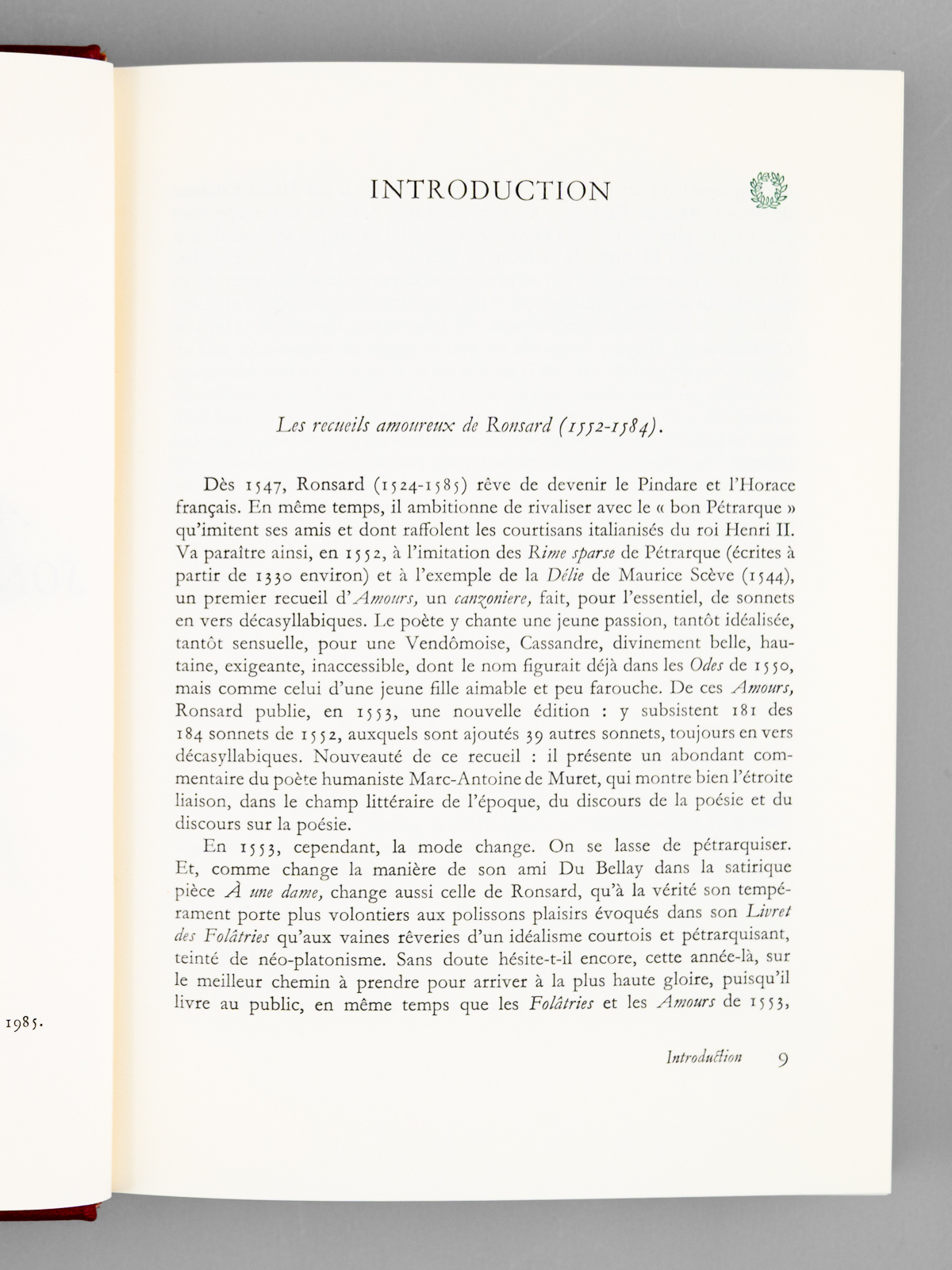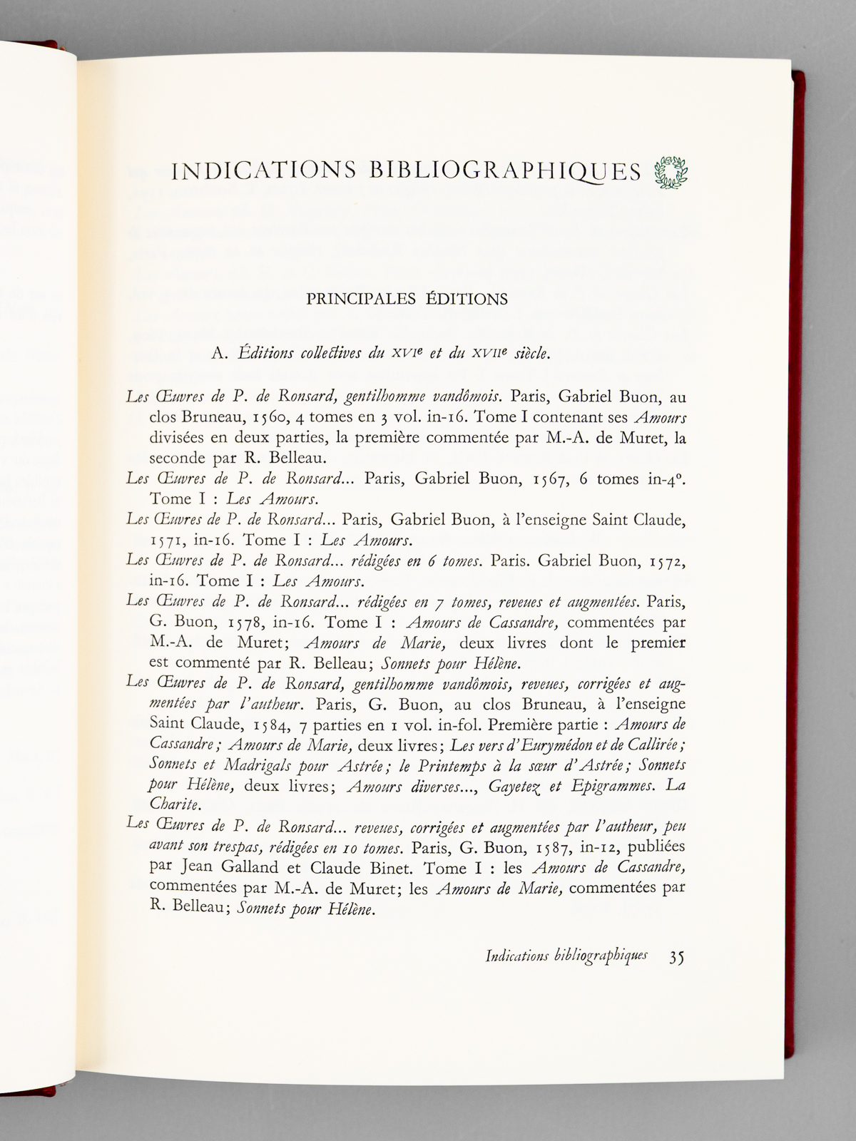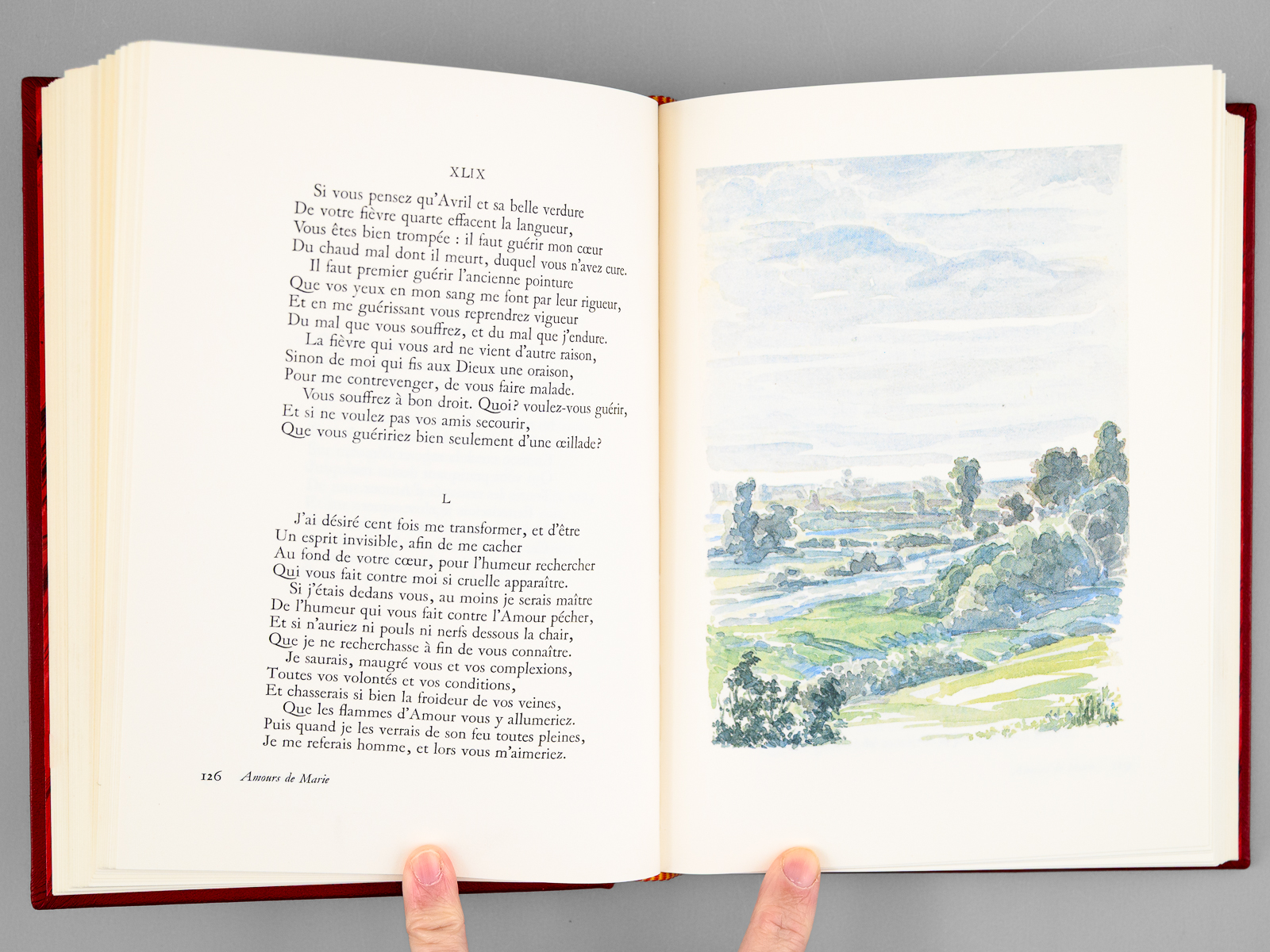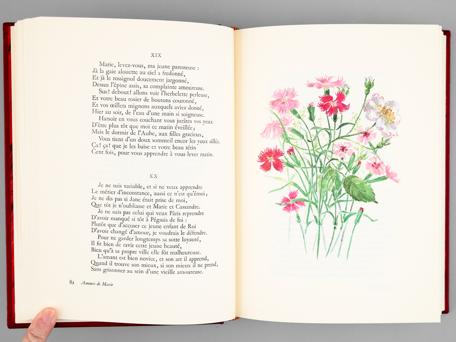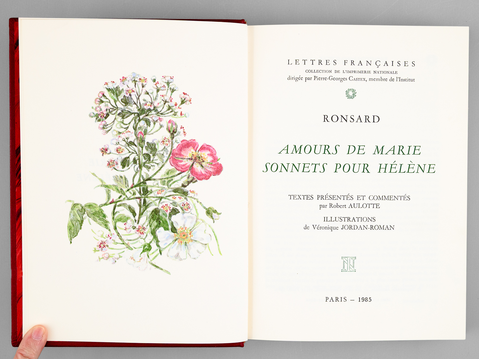Textes présentés et commentés par Robert Aulotte, illustrations de Véronique Jordan-Roman, un des 4150 exemplaires sur papier d'édition de Rives (exemplaire du service de presse non numéroté), 1 vol. in-8 reliure pleine cuir rouge éditeur, dos à 4 nerfs dorés, tête dorée, coll. Lettres Françaises, collection de l'Imprimerie Nationale, Imprimerie Nationale, Paris, 1985, 365 pp. Commentaire : Bon exemplaire