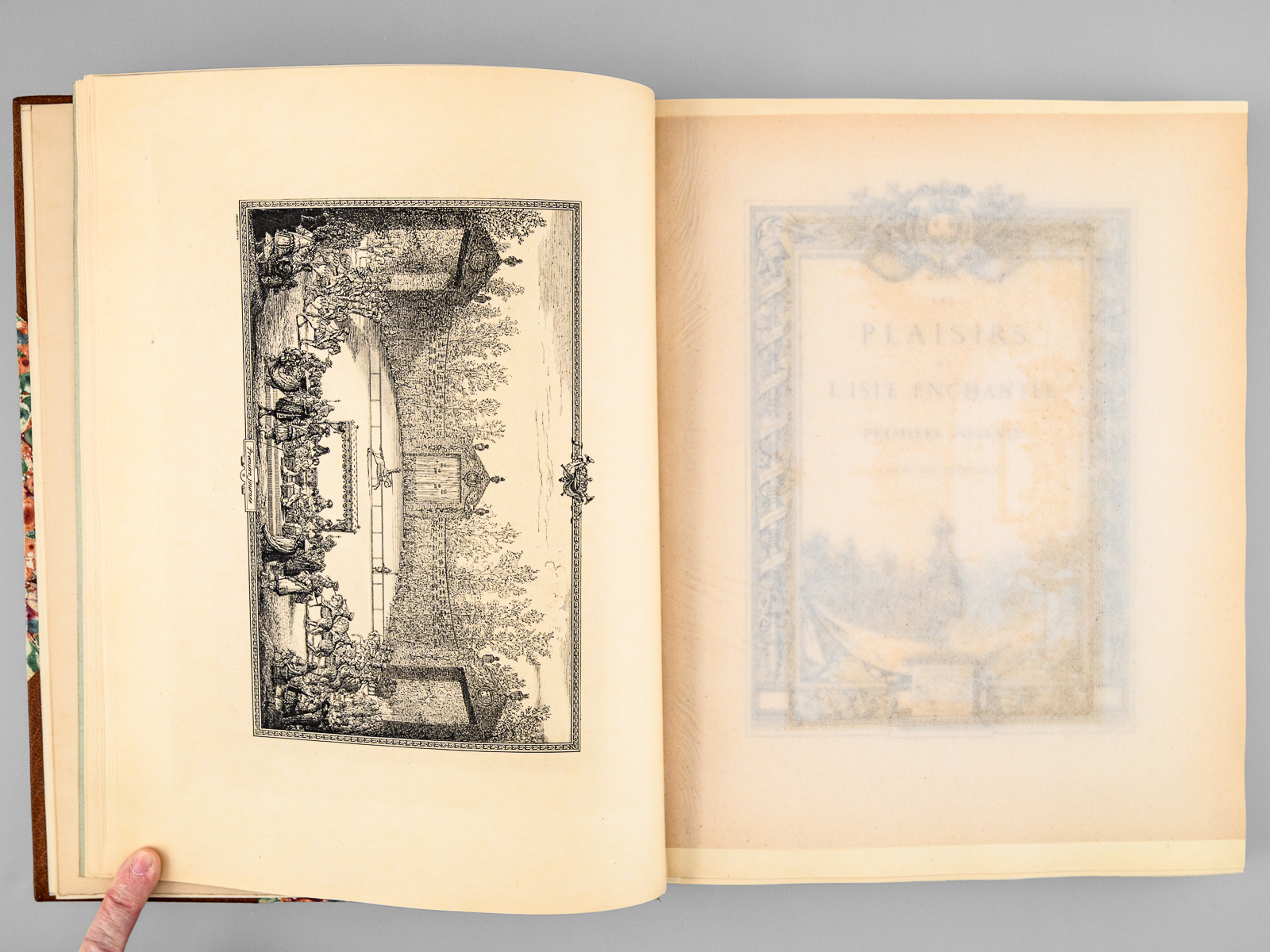 Commentaire : Rare exemplaire du tirage de tête sur papier du japon du tome premier cette très belle édition, commencée en 1882 chez Lemonnyer et terminée en 1896 chez Emile Testard. Le tirage sur japon contient une deuxième suite de toutes les gravures du texte et hors texte, tirées à part en bistre, et une troisième suite en sanguine de la grande composition hors texte. Molière joua un grand rôle dans l'organisation des Fêtes de Versailles qui se déroulèrent du 7 au 13 mai 1664. Bon état (infime frott. en dos, bel exemplaire par ailleurs). Vicaire, V, 942 (correspond au tome XIII selon Vicaire, mais les livraisons ne portent pas de tomaison ; Vicaire signale seulement une planche hors texte)