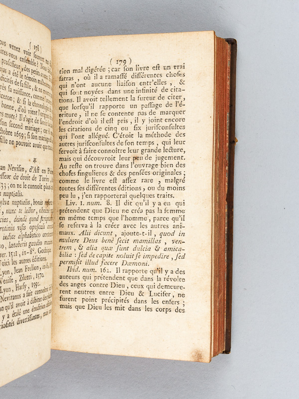 Nouvelle édition, revue & augmentée par J. M. F. A. L. D. C., 2 vol. in-12 reliure de l'époque pleine basane marbrée, dos lisse orné, Chez Antonio Pasquinetti, 178873 [ 1773 ], 358 ; 358 pp. Commentaire : Bon état (manque à une coiffe, un petit ressaut de cahier) pour cette rare édition, dont la décence nous interdit de révéler le titre complet. Le contenu de ce recueil d'anecdotes est beaucoup plus savant et spirituel que le titre ne le suggère. On citera une de ces anecdotes : 'Un étranger ayant appris que M. le président Nicolaï passait pour le meilleur joueur d'échecs, vint exprès de fort loin pour en être témoin par lui-même. Cet inconnu ayant appris du Suisse que son Maître étoit à la Chambre des Comptes, mais qu'il alloit revenir, l'attendoit tout botté dans une Salle, & le Président de retour, il lui dit les raisons de don voyage. Le Président fit préparer un jeu d'échecs & perdit la partie ; il ne put engager l'inconnu à une seconde partie, ni à lui dire son nom, qu'il n'a pu savoir depuis'