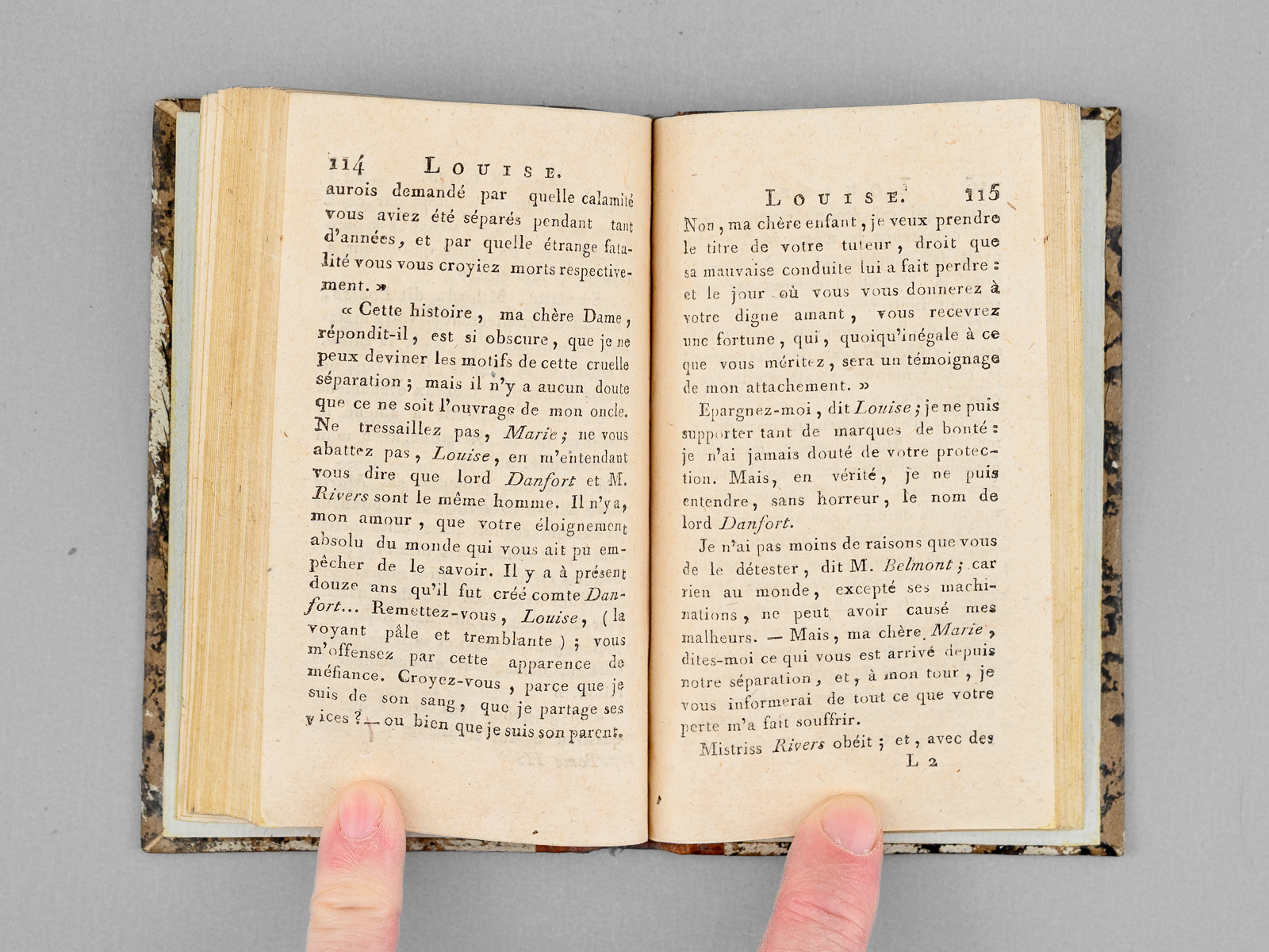 Par Miss.... Traduit de l'Anglois à Londres, 2 vol. in-24 reliure de l'époque demi-veau marbré à petits coins de vélin, Chez Favre, Libraire, au Palais de l'Egalité, ci-devant Palais-royal, galeries de bois, Paris, 1793, 140 ; 166 pp. avec frontispice Commentaire : Rare petite édition parue sous la Révolution. Bon état