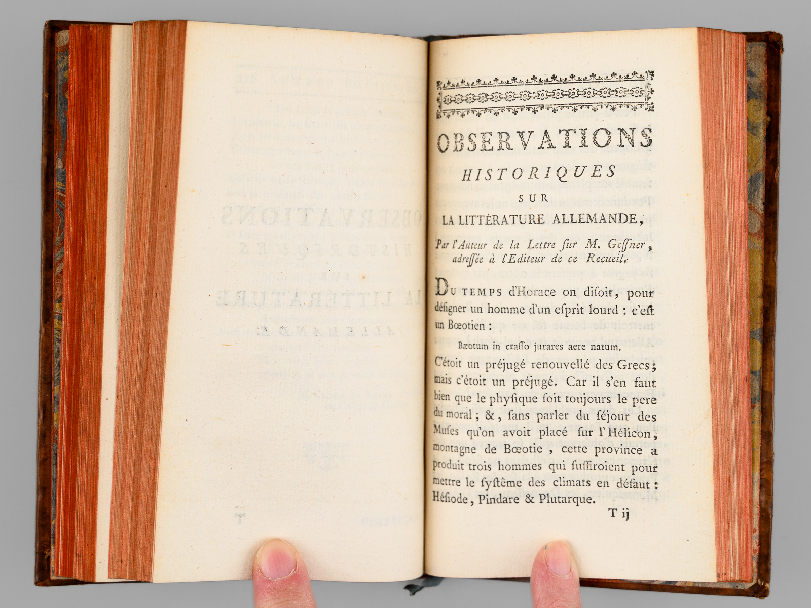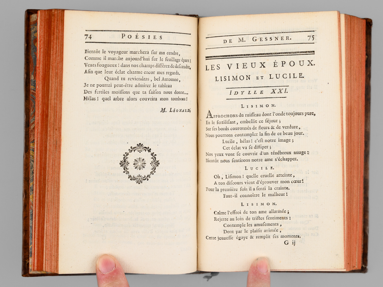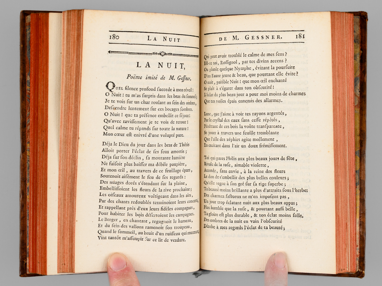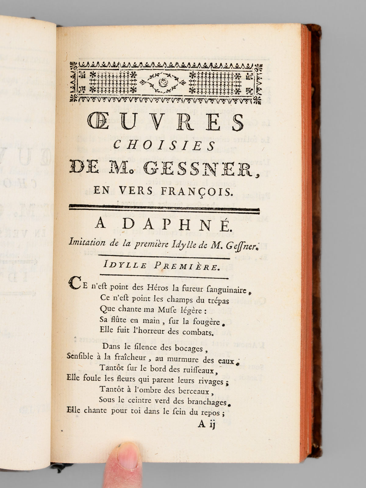 Suivies de Poésies diverses de l'Allemand, aussi en vers françois ; sçavoir des Fables, Idylles, Chansons, Odes, &c. avec des Observations historiques sur la Littérature Allemande, 1 vol. in-12 reliure de l'époque plein veau marbré, dos à 5 nerfs dorés orné, Chez les Libraires Associés, Imprimé à Zurich & se trouve à Paris, 1774, lxxxiv-342 pp. et 1 f. n. ch. (Catalogue) Commentaire : Bon état (petits mq. en coiffes, coins lég. frottés, très bon état par ailleurs)