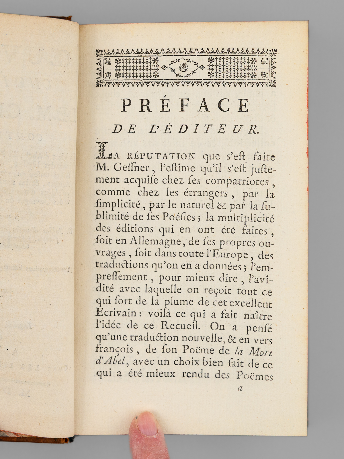 Oeuvres choisies de M. Gessner, contenant La Mort d'Abel, la Nuit, & autres Poëmes ; avec des Idylles, des Pastorales, & autres Pièces mises en vers françois par différents Auteurs, & les meilleurs Poëtes en ce genre ; pr&ea