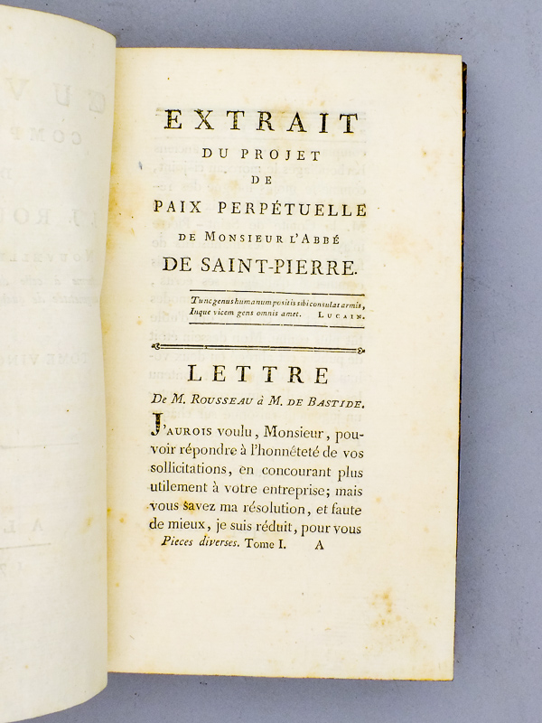 Pièces diverses (2 Tomes - Complet) Tome 1 : Jugement sur la Paix perpétuelle - Jugement sur la Polysynodie - Lettres diverses ; Tome 2 : Lettres diverses