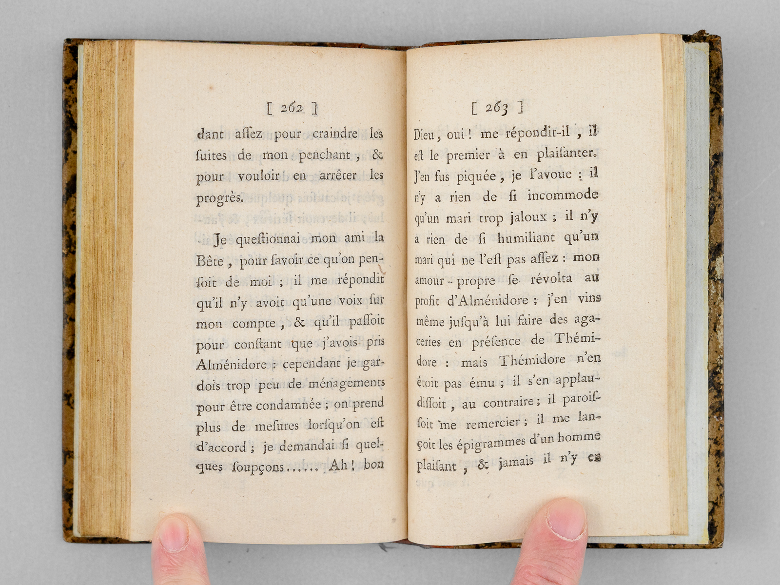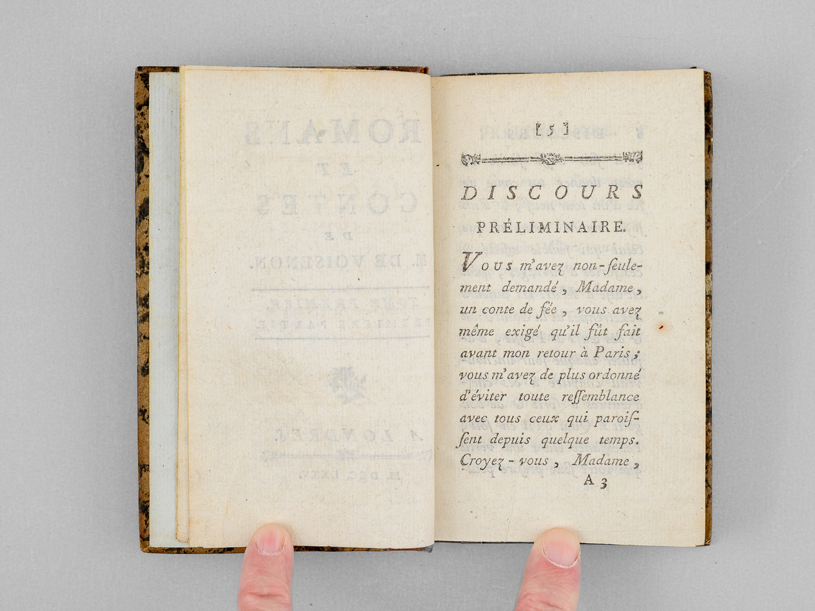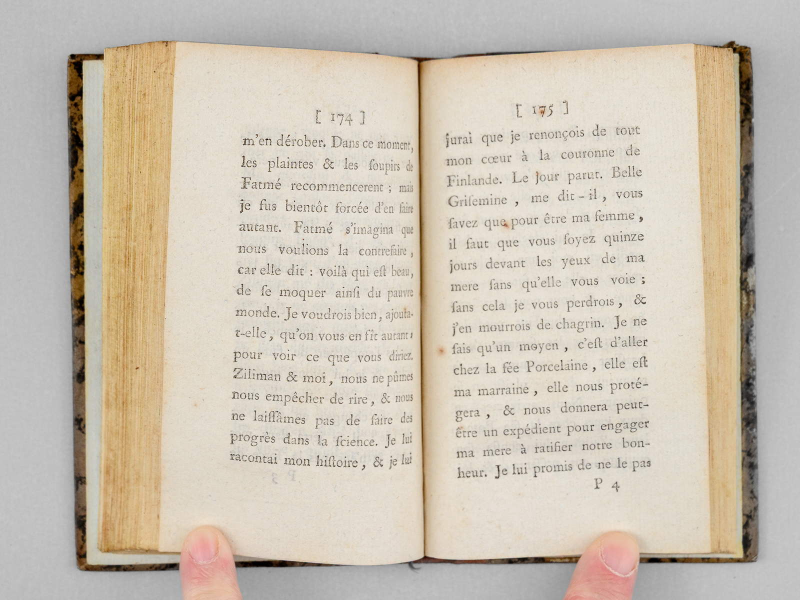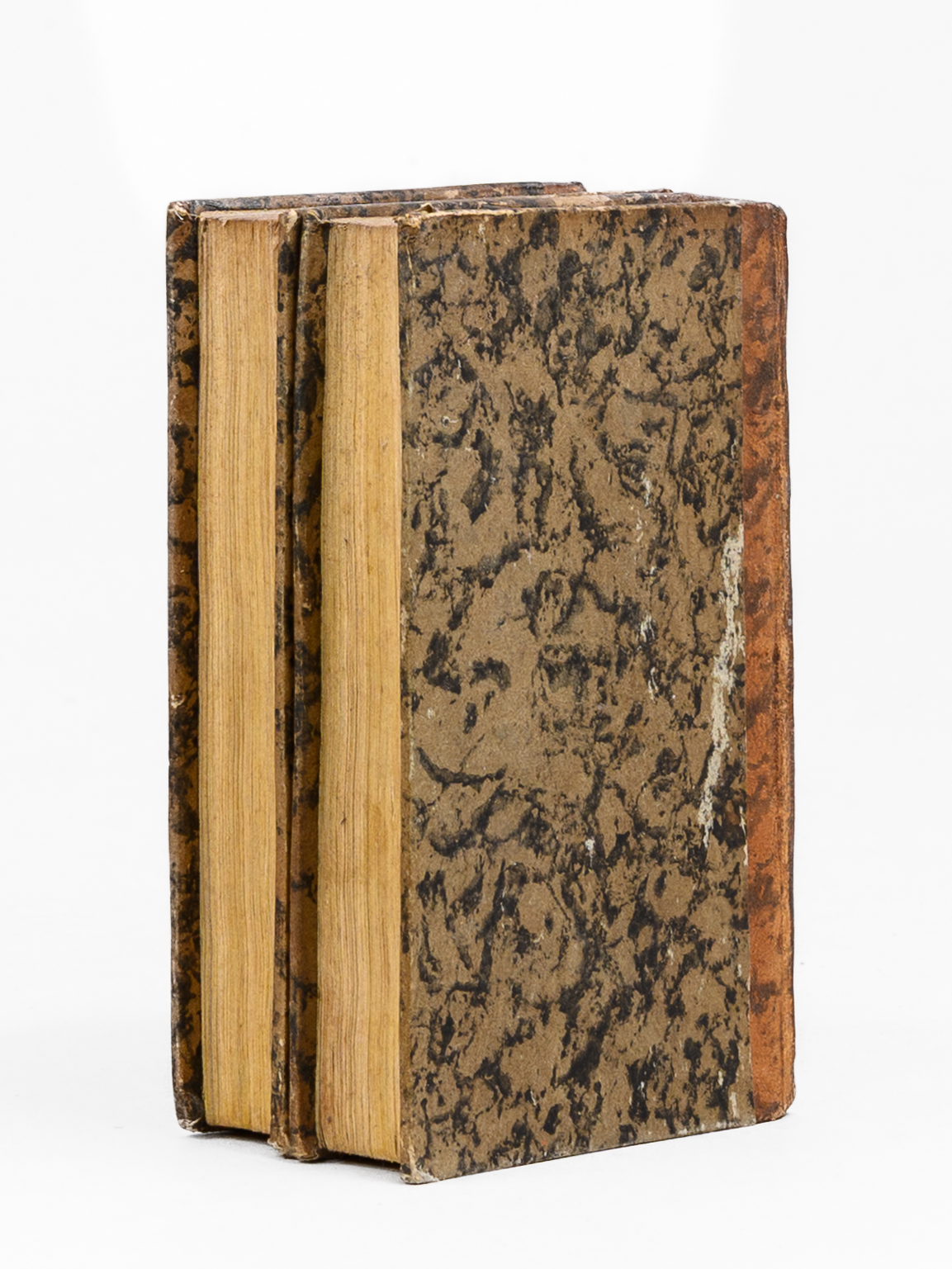 2 vol. in-18 reliure demi-basane marbrée, dos lisse orné, Londres, 1775, 302 pp. et 1 ff. ; 303 pp. Commentaire : Petit format de type Cazin. Bon état (une coiffe sup. arasée, accroc sans mq. à un feuillet, bon exemplaire par ailleurs).