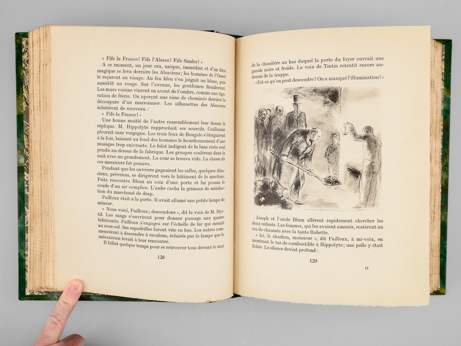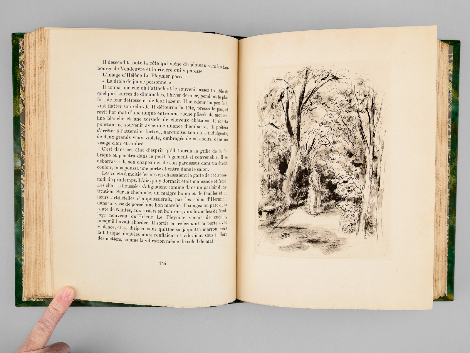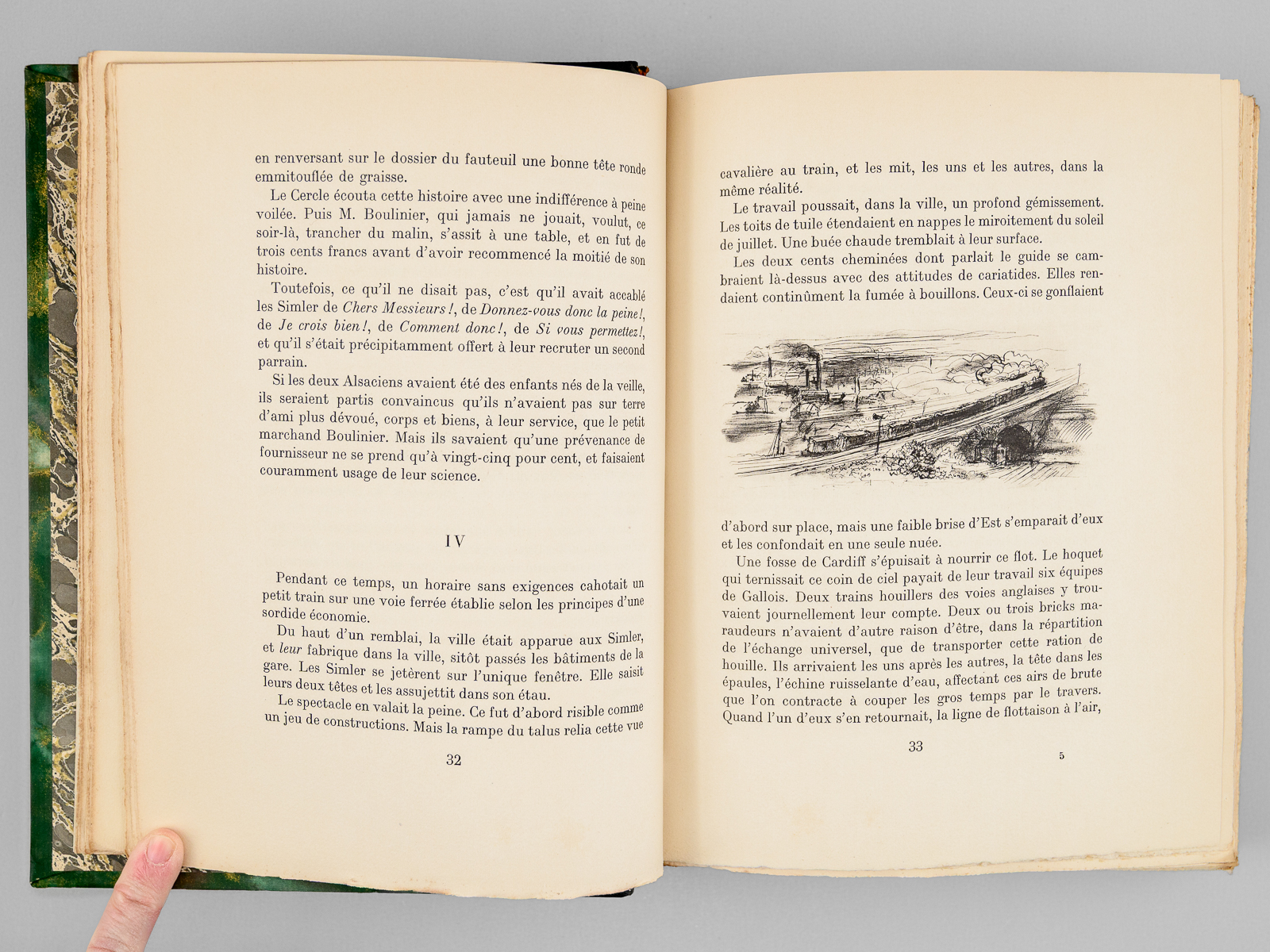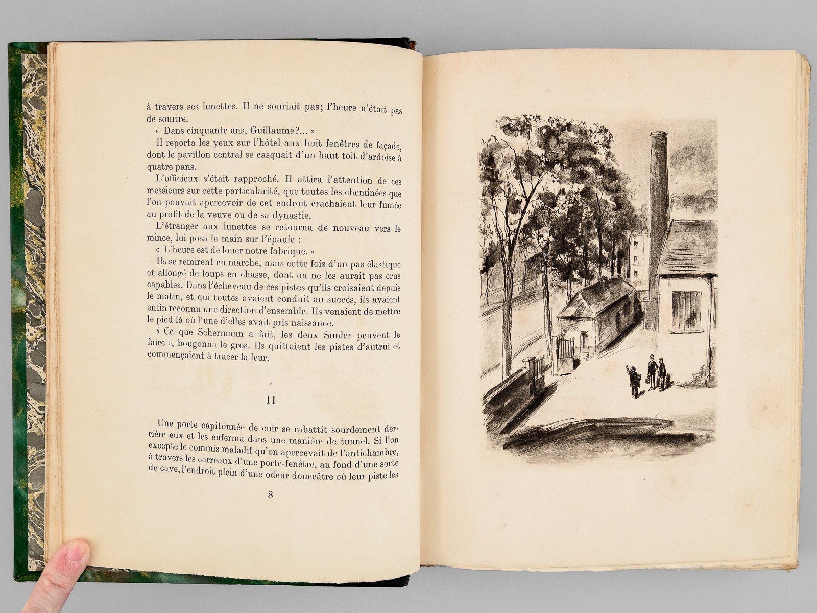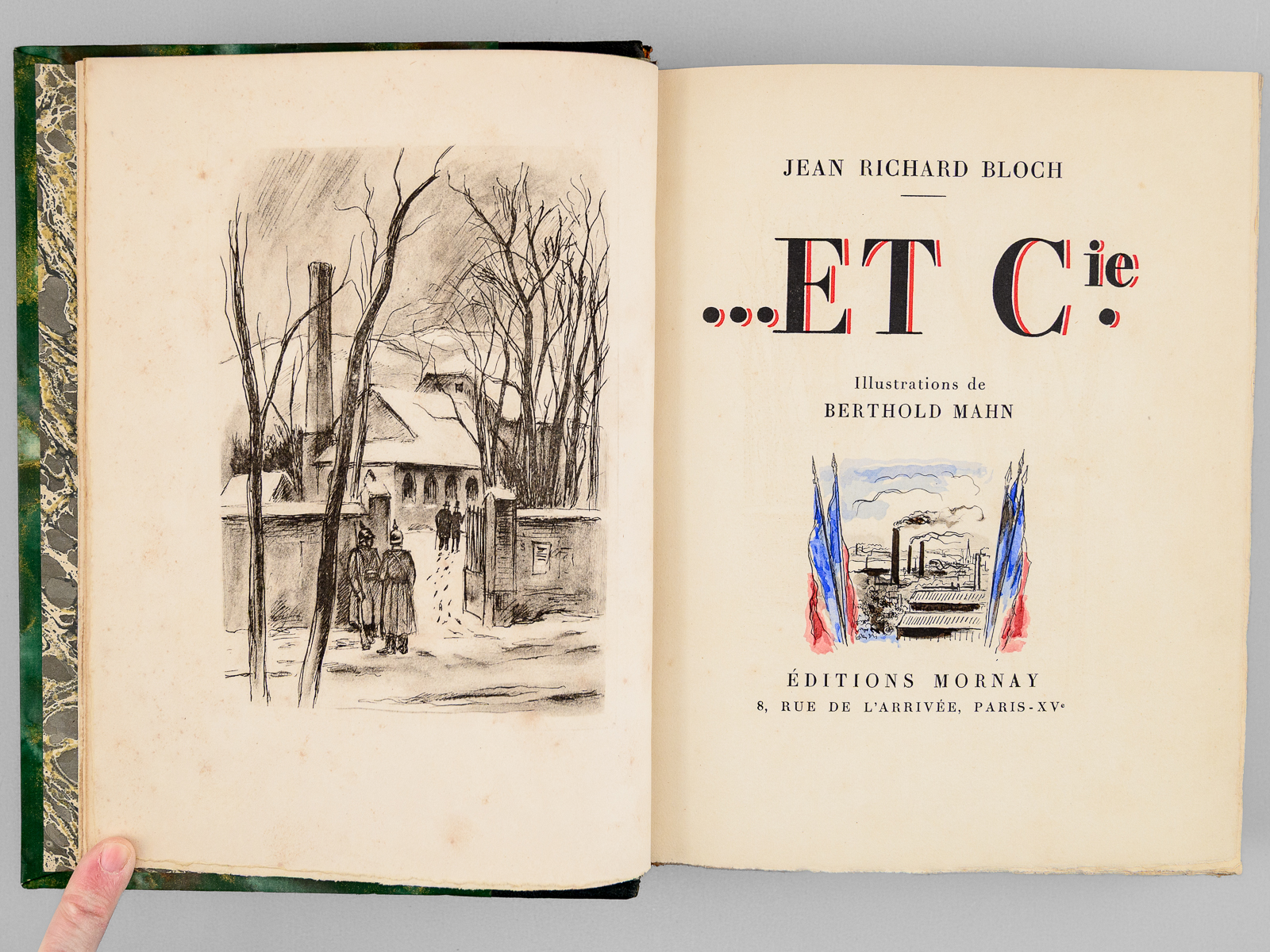 Illustrations de Berthold Mahn, un des 350 exemplaires sur vélin de Rives numérotés (n° 163), 1 vol. fort et grand in-8 reliure demi-chagrin noir, dos à 5 nerfs, Éditions Mornay, Paris, 1930, 439 pp. Commentaire : Agrégé d'histoire et beau-frère d'André Maurois, Jean-Richard Bloch (1884-1947) sera blessé à 3 reprises pendant la Première Guerre Mondiale. D'abord paru en 1917 (le texte avait été rédigé de 1911 à 1914) puis remanié en 1925, ce roman s'interroge sur la question de savoir s'il est possible d'être tout ensemble 'français, bourgeois et juif'. Jean-Richard Bloch y relate les aventures d'une famille d'industriels juifs choisissant de quitter l'Alsace en 1871 et venant remonter leur filature en Normandie. Bon exemplaire