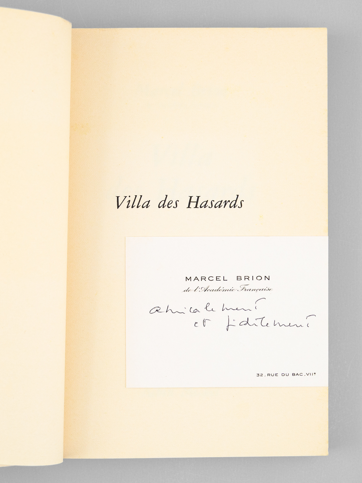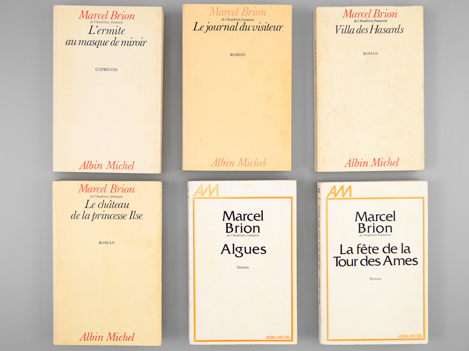[ Lot de 6 ouvrages dédicacés ou avec carte autographe de l'auteur, à Maurice Druon ] Le journal du visiteur - Villa des Hasard - Le château de la princesse Ilse - Algues - La fête de la Tour des Ames - L'Ermite au masque - Auteur: BRION, Marcel - Année d'édition: 1974