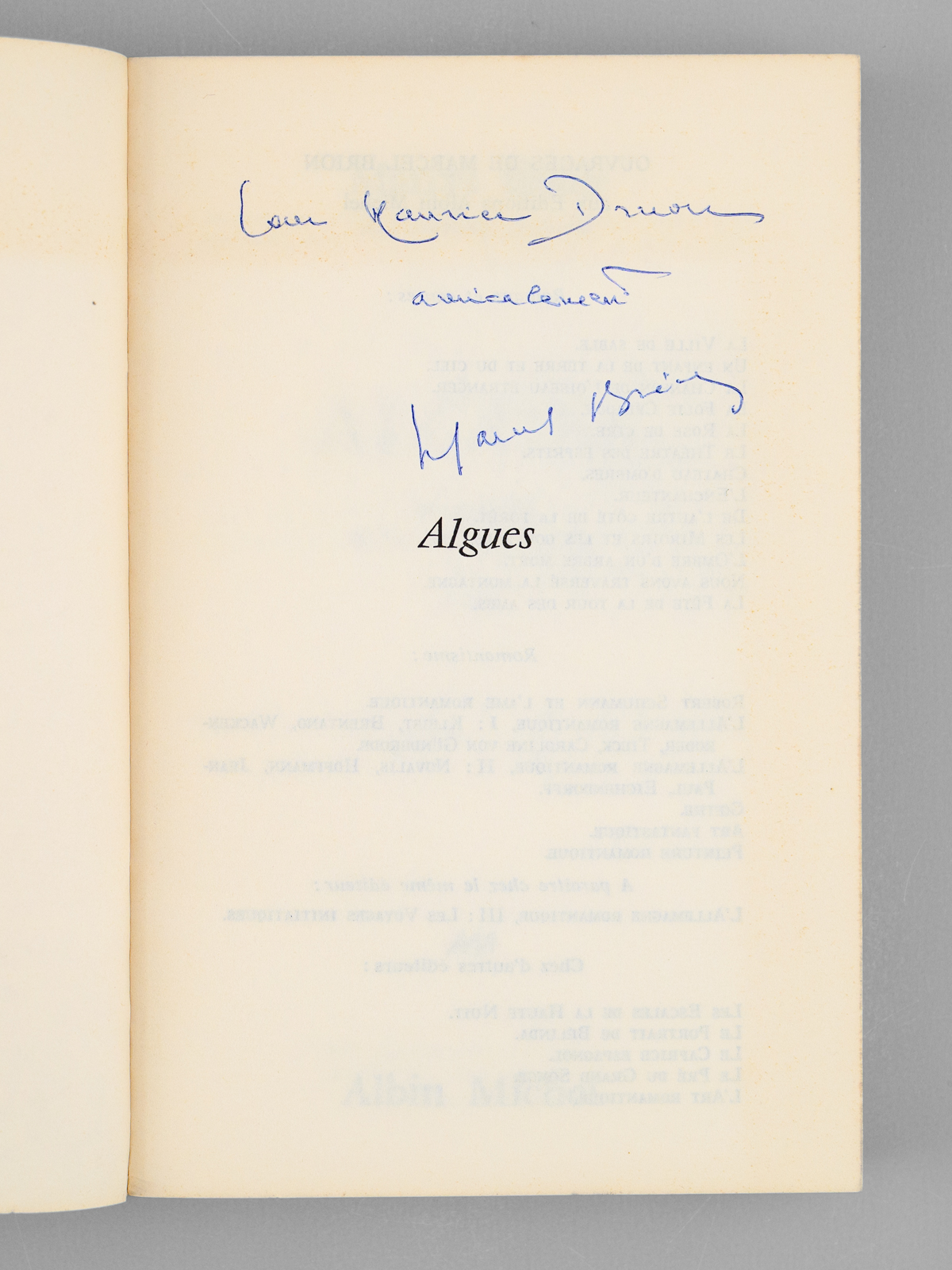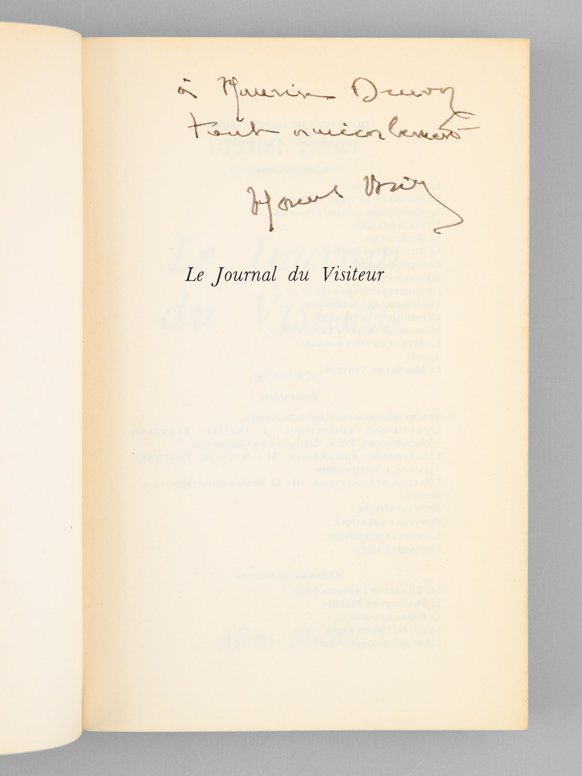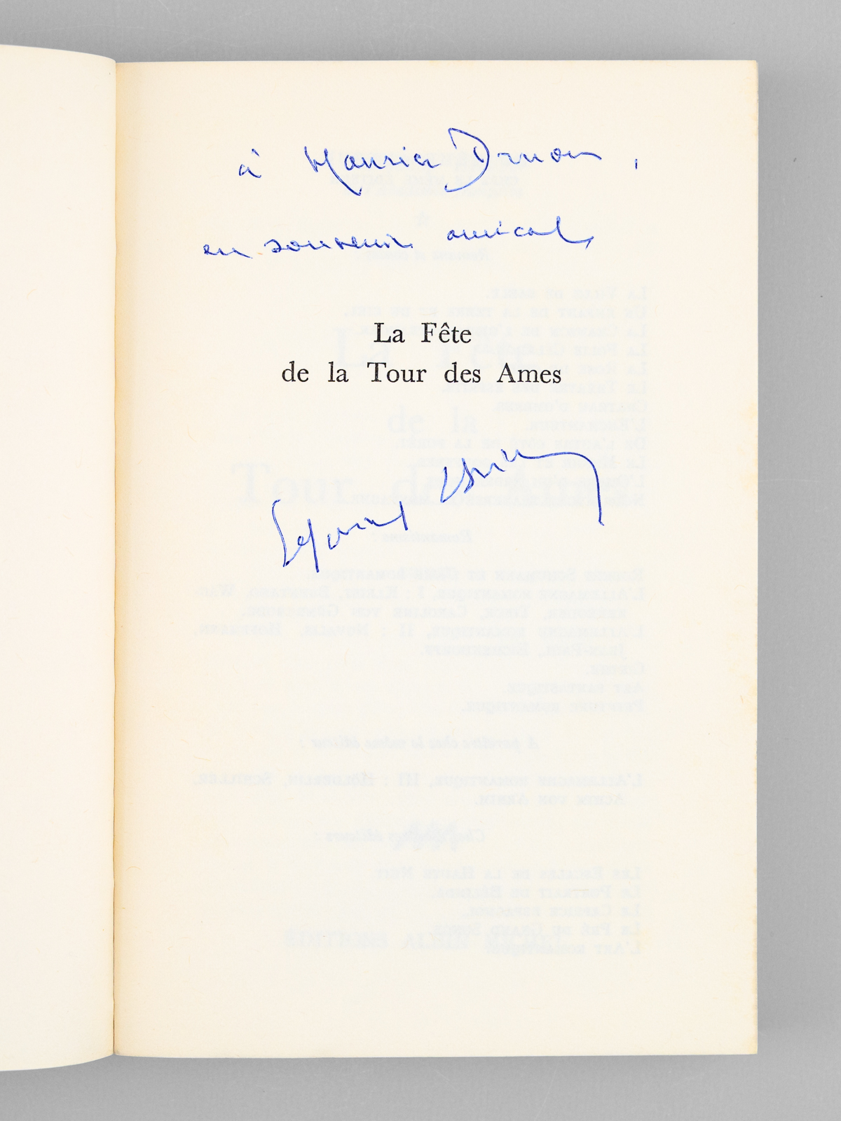 [ Lot de 6 ouvrages dédicacés ou avec carte autographe de l'auteur, à Maurice Druon ] Le journal du visiteur - Villa des Hasard - Le château de la princesse Ilse - Algues - La fête de la Tour des Ames - L'Ermite au masque