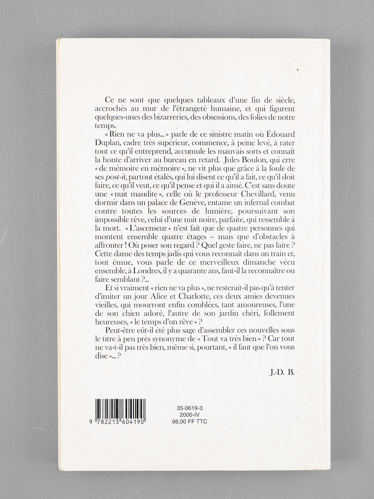 6 vol. in-8 br. sous jaquette illustrée, Fayard, Odile Jacob et Grasset, Paris, 2004, 2009, 2000, 1991, 1994, 2001 Commentaire : Chacun des 6 ouvrages (romans et nouvelles et essai pour le dernier titre) est enrichi d'un envoi de Jean-Denis Bredin à Maurice Druon. Bon état (petit accroc à une jaquette) pour cet ensemble de superbe provenance : de la bibliothèque du grand écrivain Maurice Druon, Secrétaire Perpétuel de l'Académie Française de 1985 à 1999 qui, conformément à son habitude, a plié l'angle des feuillets de 2 ouvrages (le premier et le dernier titres) contenant des passages de l'ouvrage qui avaient retenu plus particulièrement son attention