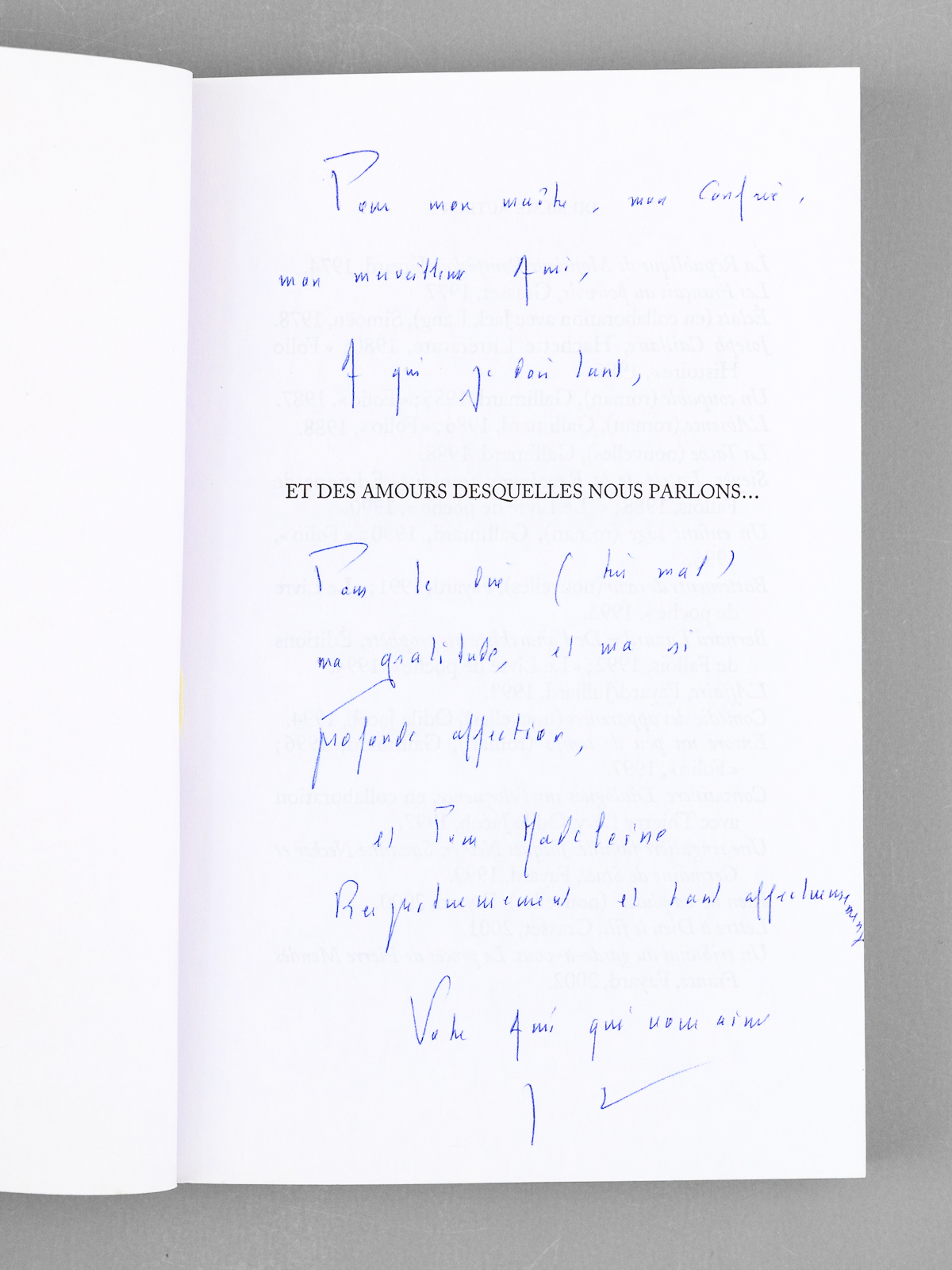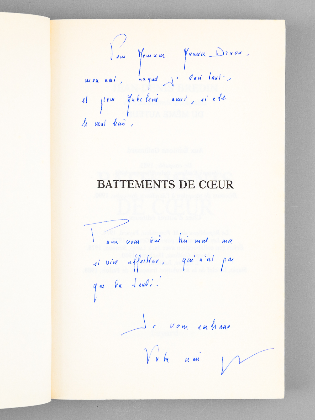 [ Lot de 6 ouvrages dédicacés par l'auteur à Maurice Druon ] Et des amours desquelles nous parlons... - Ce rendez-vous avec la gloire - Rien ne va plus... Nouvelles - Battements de coeur - Comédie des Apparences - Lettre &agrav - Auteur: BREDIN, Jean Denis - Année d'édition: 2004