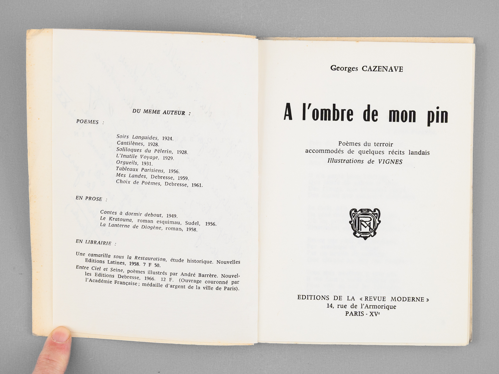 Poèmes et récits du terroir landais, illustrations de Vignes, 1 vol. in-12 br., Editions de la « Revue Moderne », Paris, 1969