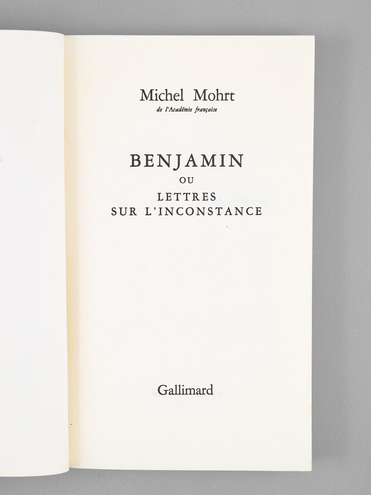 Benjamin ou Lettres sur l'Inconstance [ Livre dédicacé par l'auteur à Maurice Druon ]