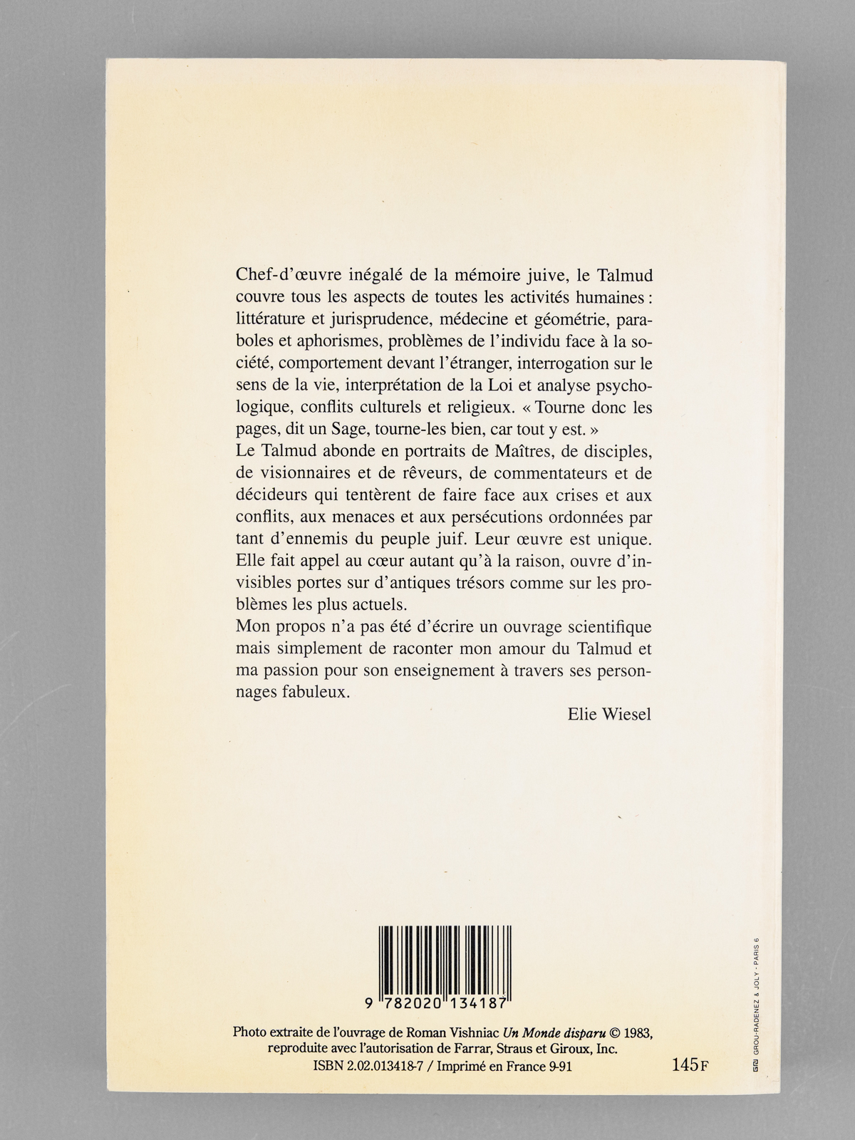 1 vol. in-8 br., Seuil, 1991, 363 pp. Commentaire : Envoi de l'auteur à Maurice Druon : 'Pour Madeleine et Maurice Druon, avec admiration profonde de leur ami.' Bon état. Maurice Druon (1918-2009), neveu de Joseph Kessel, fut résistant, écrivain auteur notamment de la saga des Rois maudits, homme politique. Elu à l'Académie Française en 1968, il en devint le Secrétaire Perpétuel en 1985.