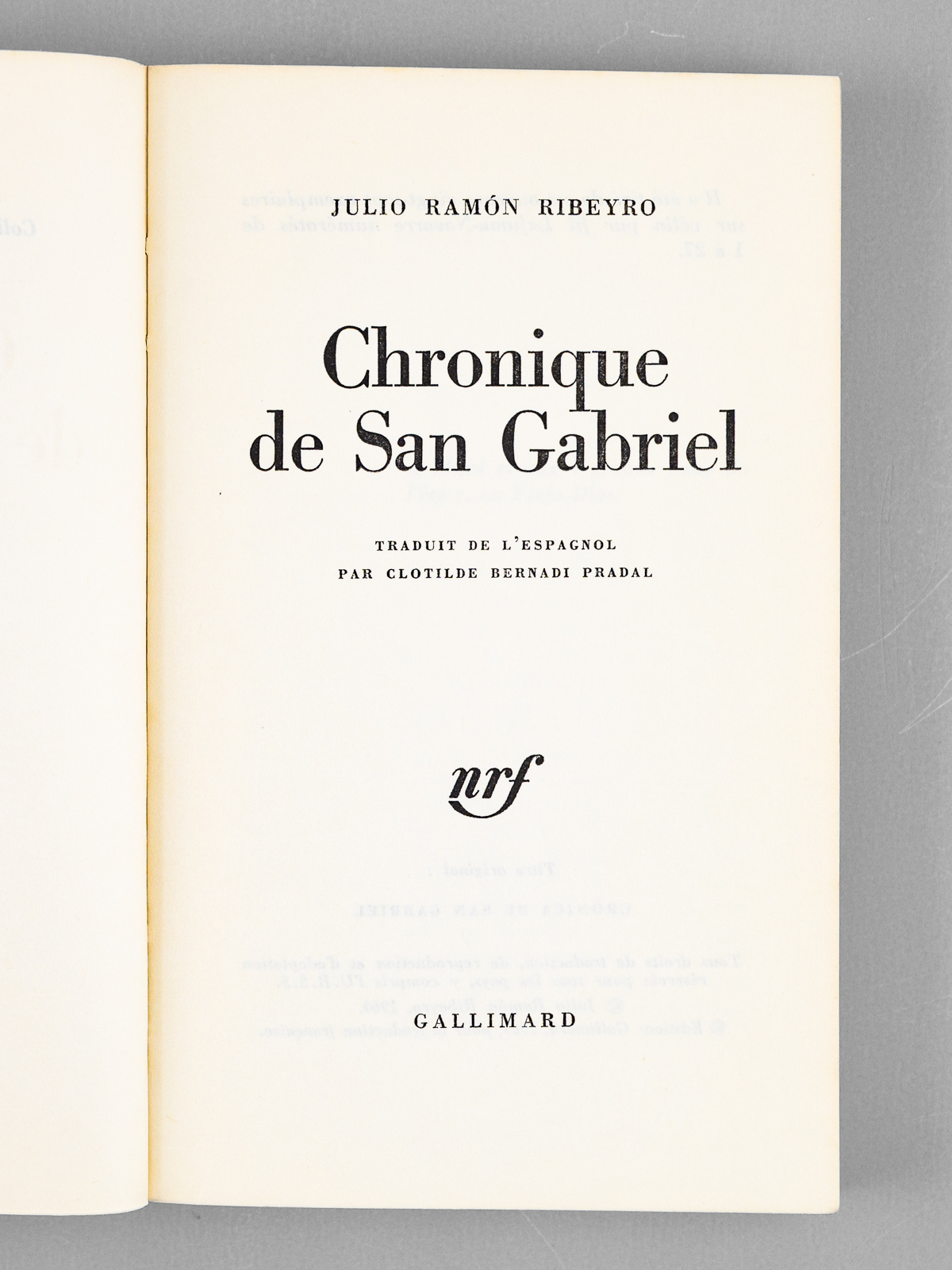 1 vol. in-12 br., coll. La Croix du Sud dirigée par Roger Caillois, NRF, Gallimard, Paris, 1969, 279 pp.