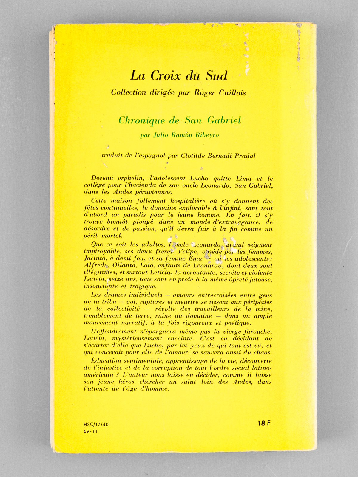 Commentaire : Bon état (frott. au second plat, très bon état par ailleurs). Roman d'apprentissage dans les Andes péruviennes.