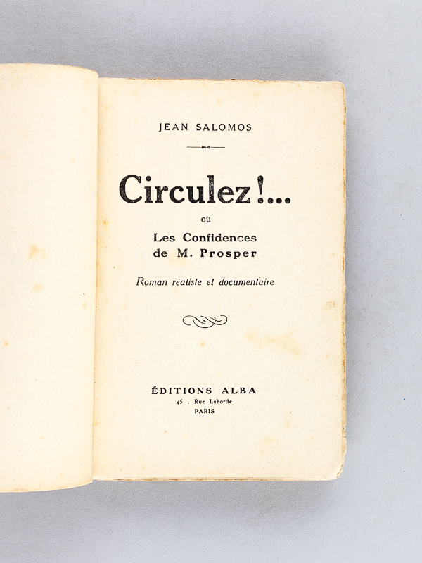 Circulez !... ou Les Confidences de M. Prosper. Roman réaliste et documentaire