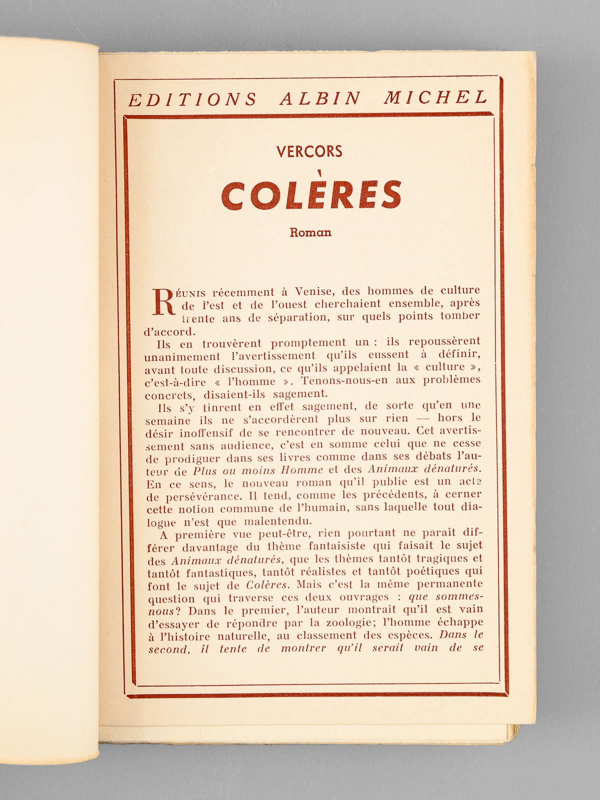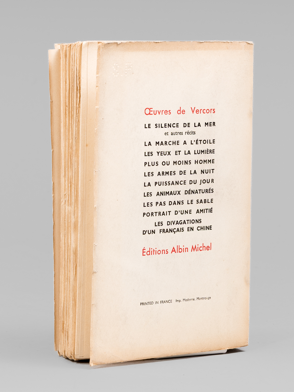 Exemplaire du service de presse marqué S.P., 1 vol. in-12 br., Albin Michel, Paris, 1956, 156 pp. Commentaire : Ouvrage dédicacé par Vercors : 'à Maurice Druon, amicalement'. Superbe provenance, de la bibliothèque du grand écrivain Maurice Druon, Secrétaire Perpétuel de l'Académie Française de 1985 à 1999 et immortel auteur avec son oncle Joseph Kessek du 'Chant des Partisans'. Bon état (complet du 'Prière d'insérer')
