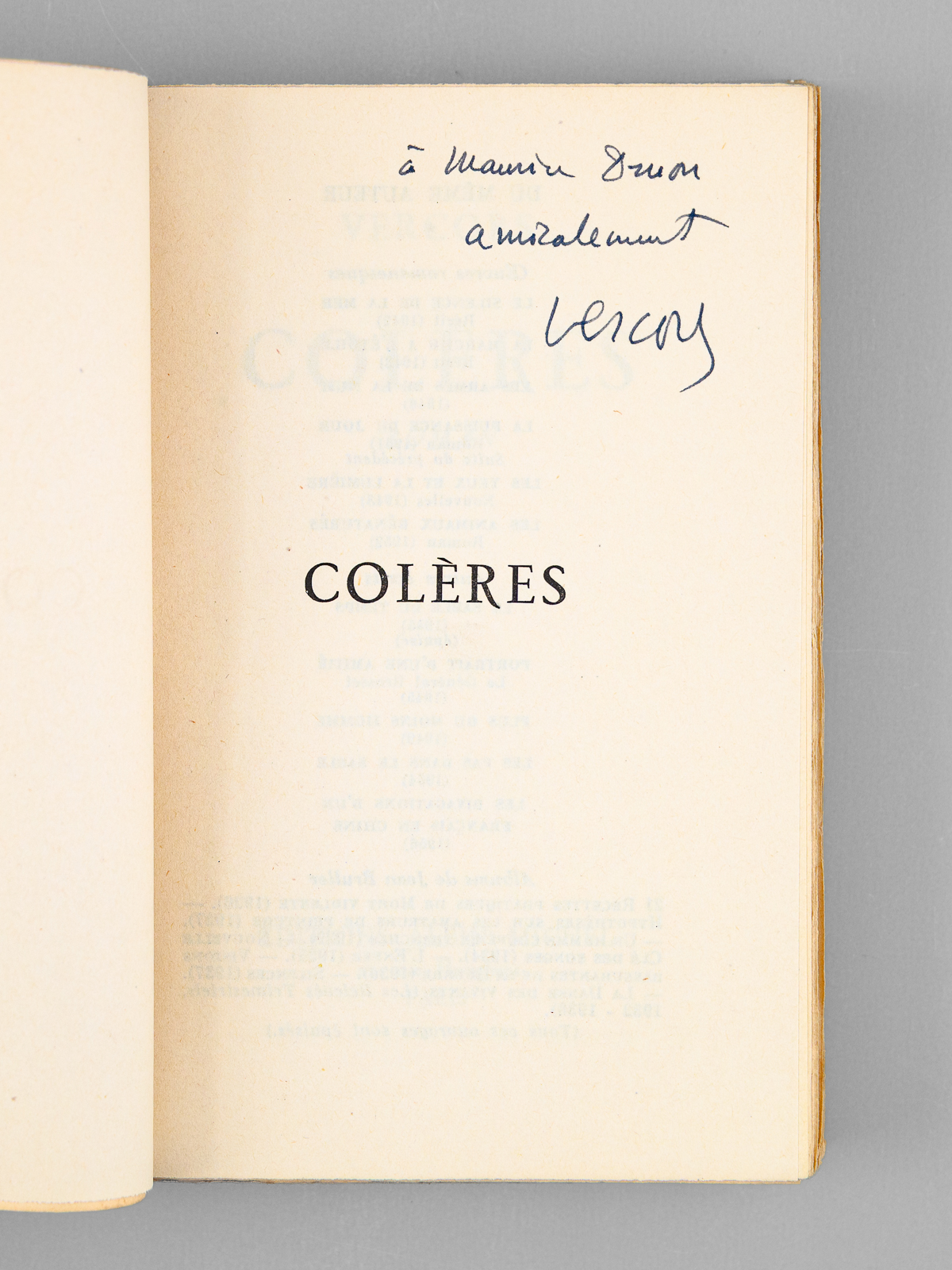Colères. Roman [ Livre dédicacé par l'auteur à Maurice Druon ]