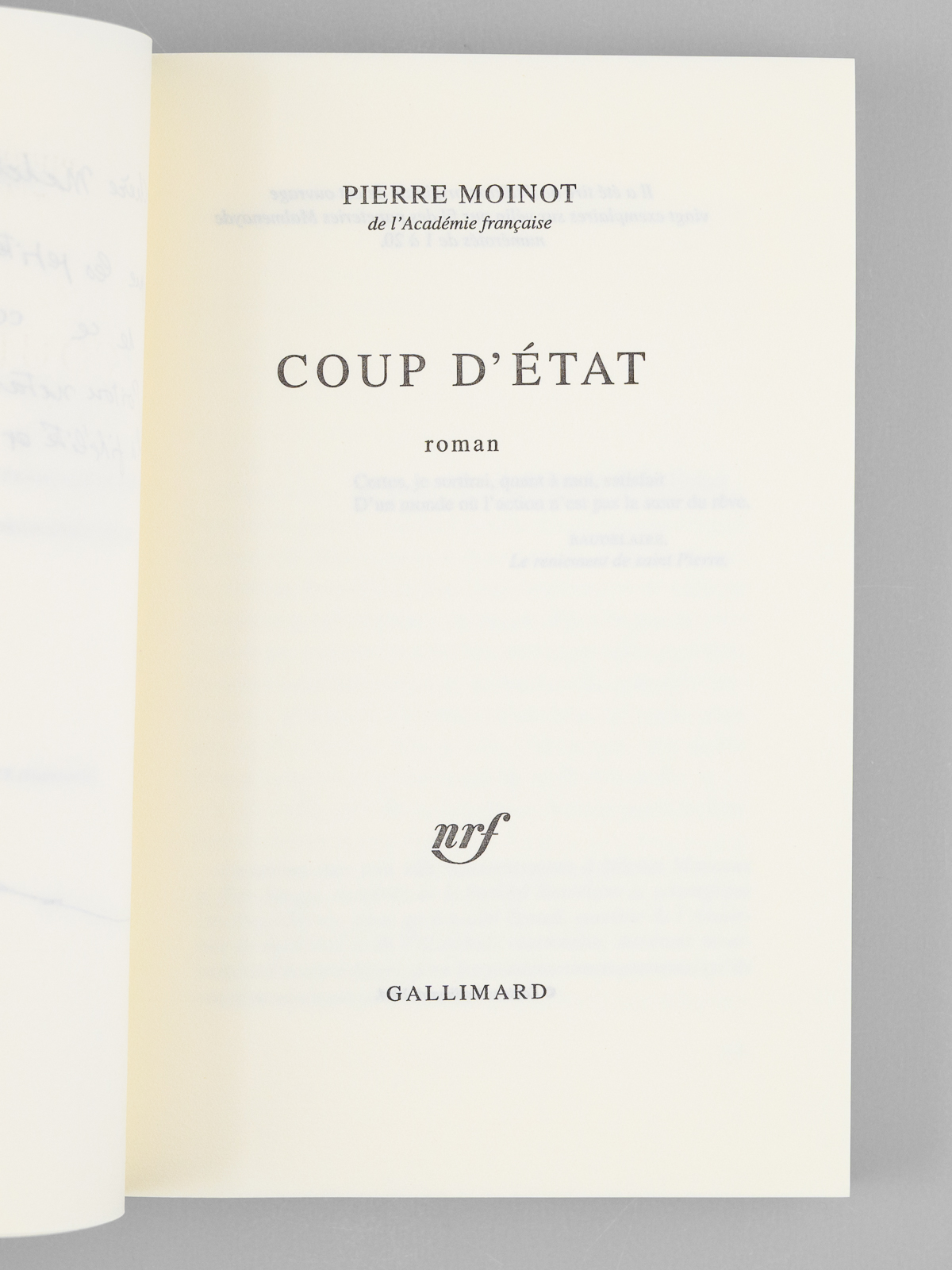 Coup d'état, roman [ Livre signé par l'auteur - Envoi à Maurice Druon ]