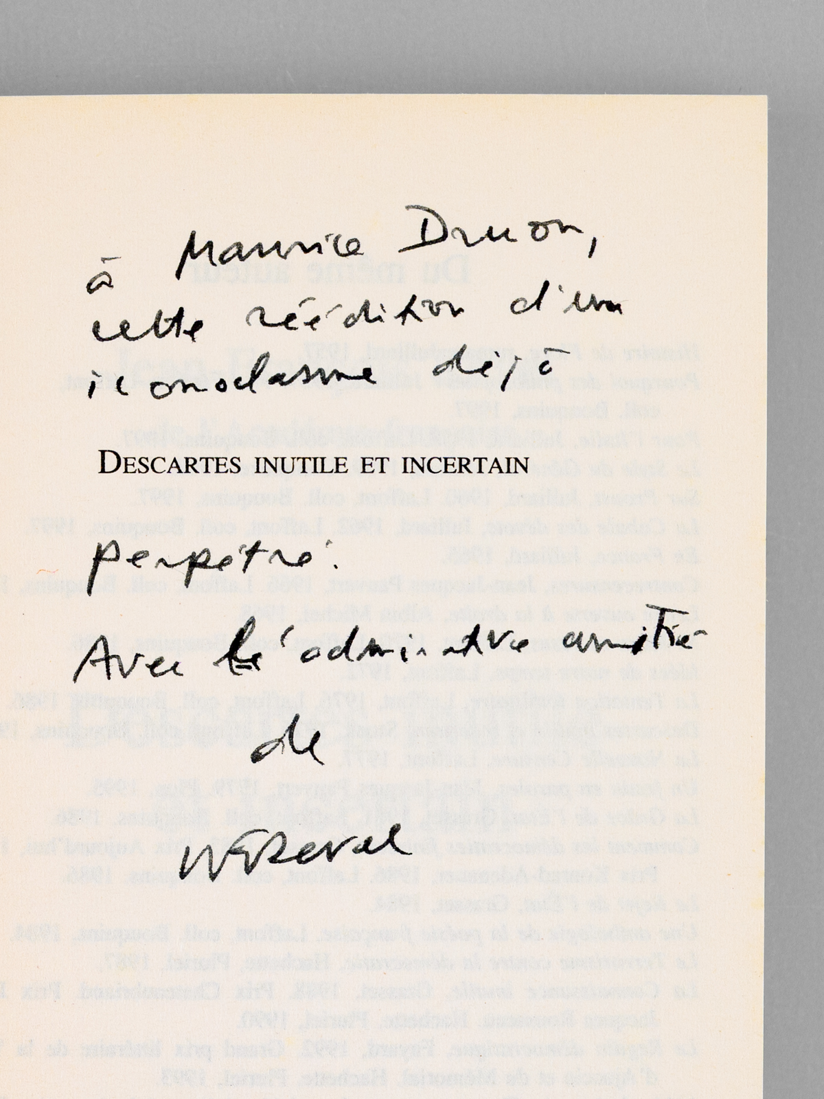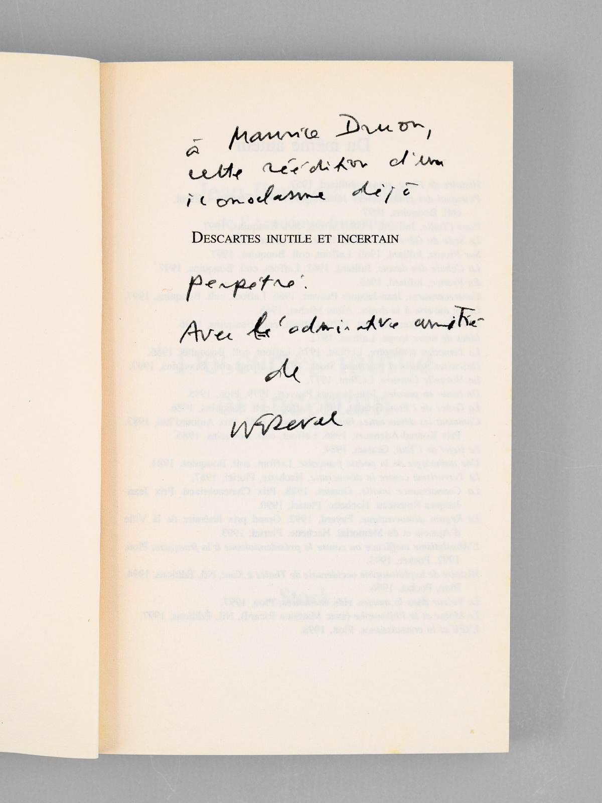 Descartes inutile et incertain [ Livre signé par l'auteur - Envoi à Maurice Druon ]