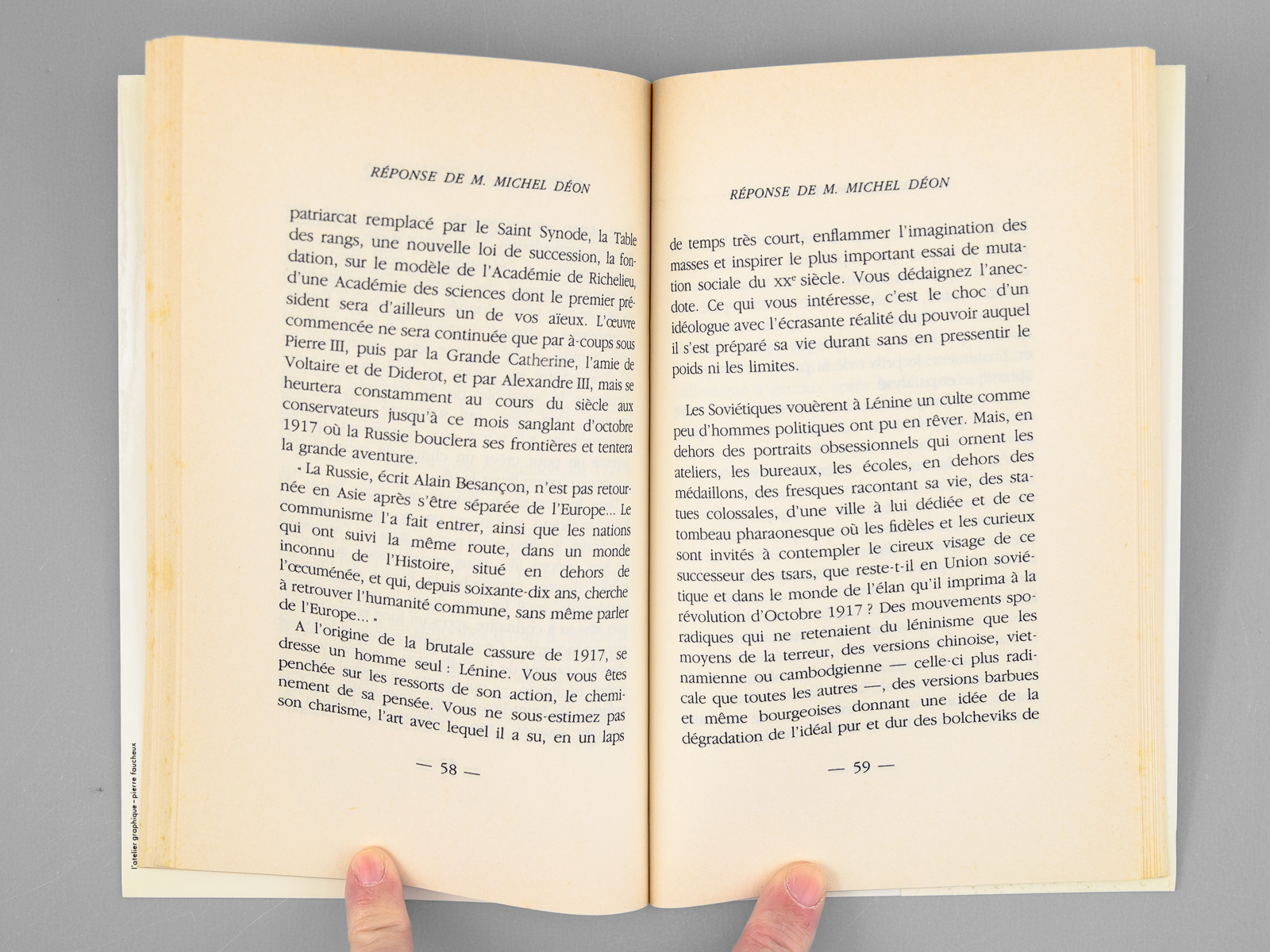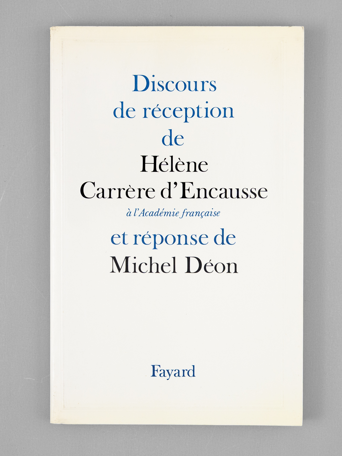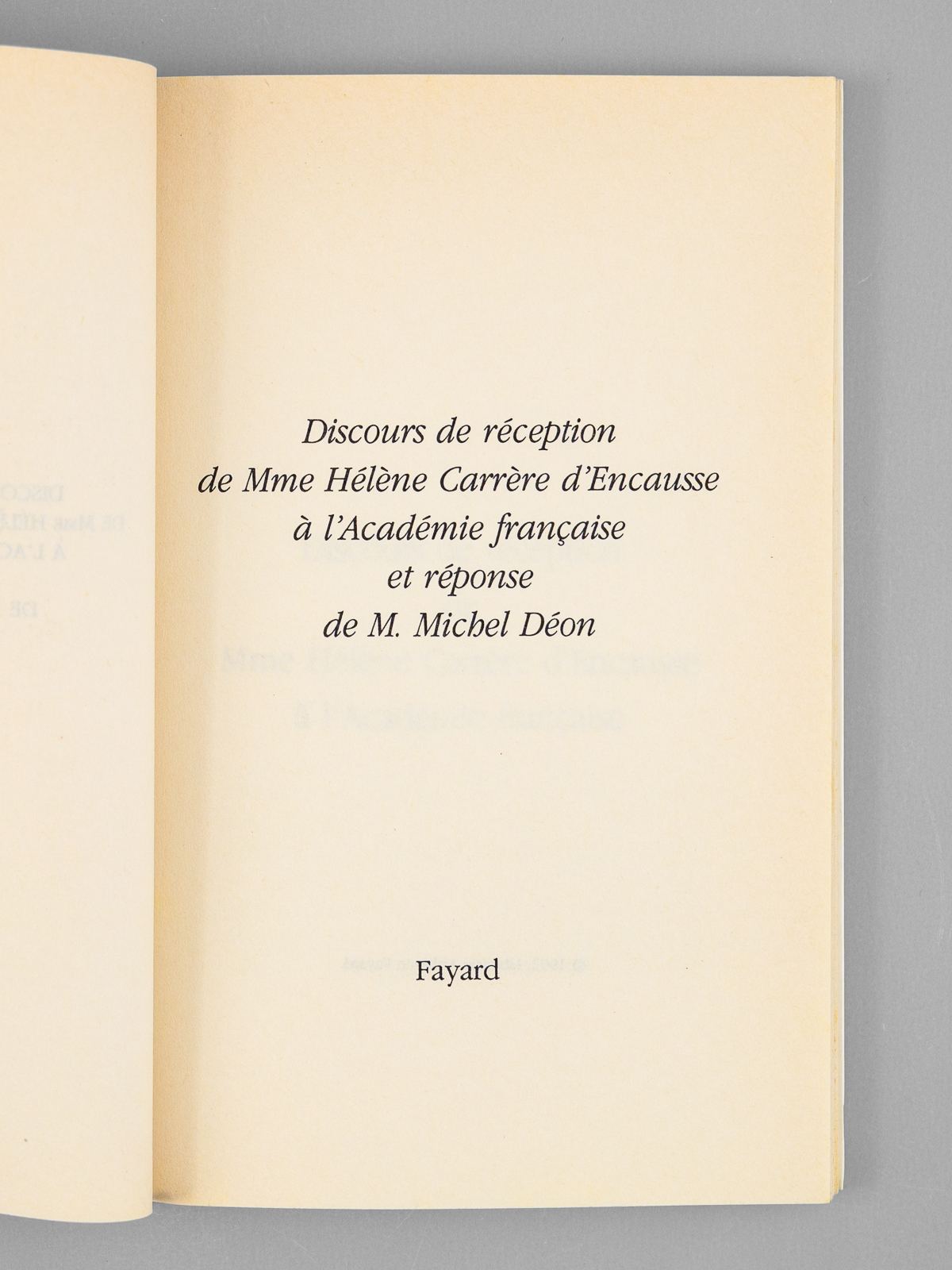Discours de réception de Hélène Carrère d'Encausse à l'Académie française et réponse de Michel Déon [ Livre dédicacé par l'auteur à Maurice Druon ]