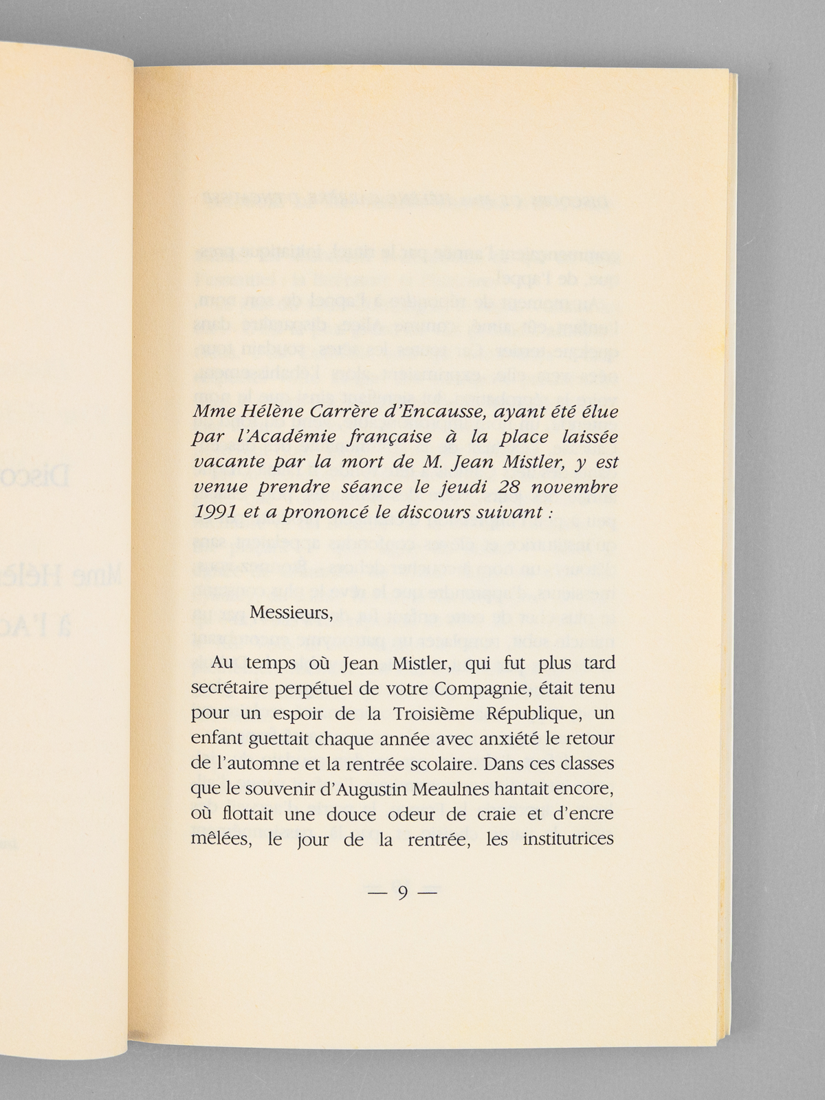 Discours de réception de Hélène Carrère d'Encausse à l'Académie française et réponse de Michel Déon [ Livre dédicacé par l'auteur à Maurice Druon ] - Auteur: CARRERE d'ENCAUSSE, Hélène - Année d'édition: 1992