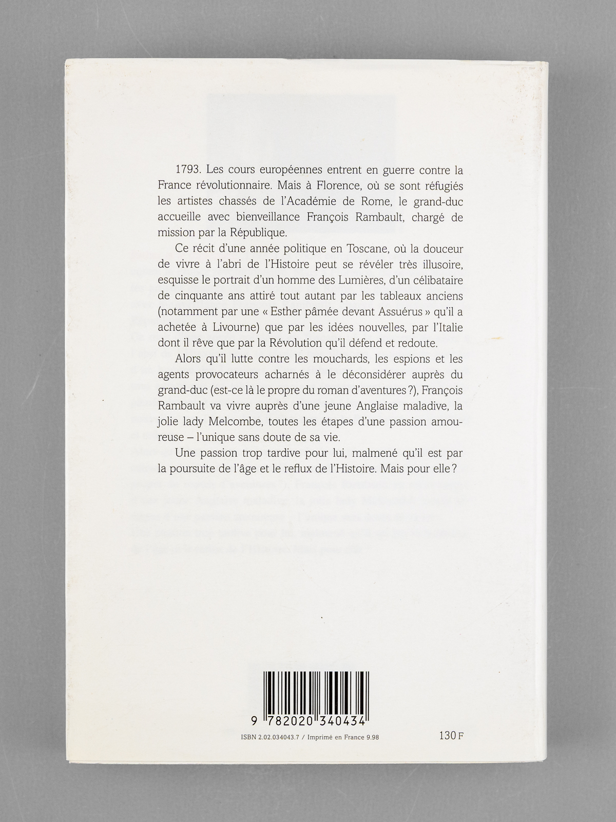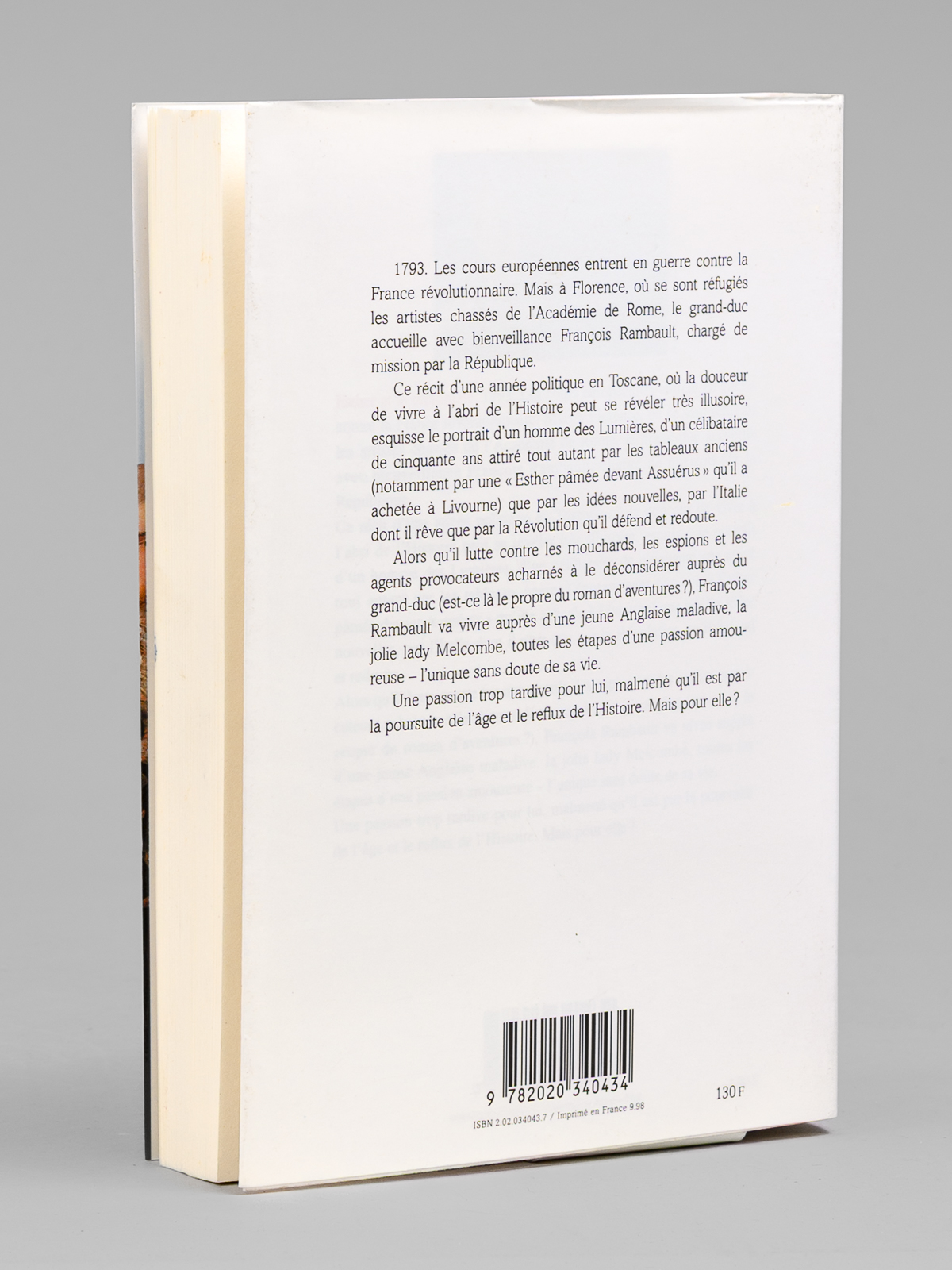 1 vol. in-8 br. sous jaquette illustrée, Seuil, Paris, 1998, 359 pp. Commentaire : Bel envoi de l'auteur : 'A Maurice Druon qui m'a appris qu'il aurait dû être ambassadeur à Rome, et qui sera peut-être complice du héros de ce livre, presque ambassadeur à Florence... [ ... ]'. Bon état pour cet exemplaire de superbe provenance : de la bibliothèque du grand écrivain Maurice Druon, Secrétaire Perpétuel de l'Académie Française de 1985 à 1999.