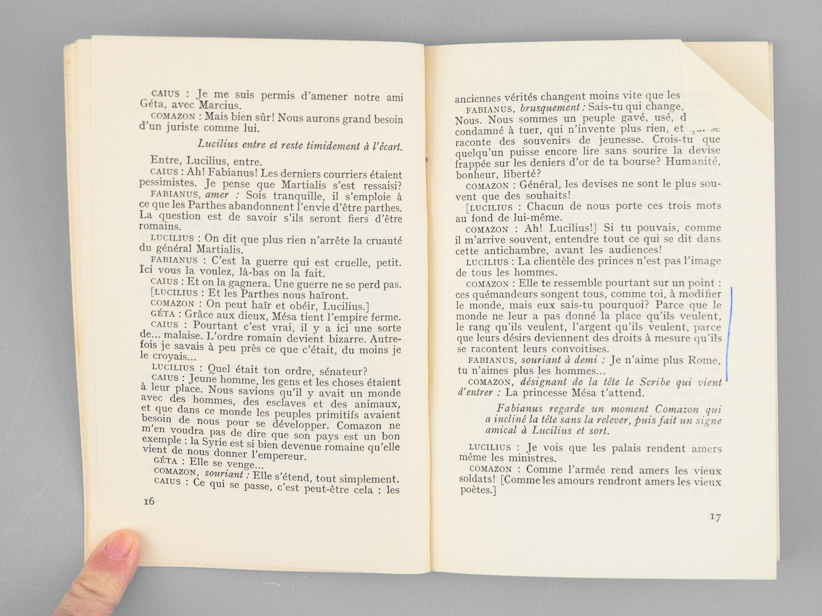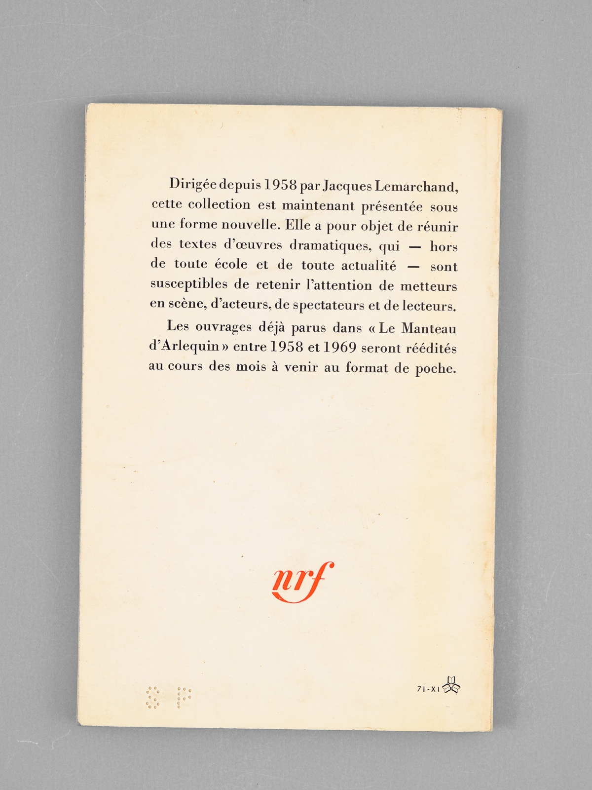 1 vol. in-12 br., coll. Le manteau d'Arlequin, NRF Gallimard, 1971, 88 pp. Commentaire : Envoi de l'auteur à Maurice Druon et à son épouse : 'Pour Madame Maurice Druon, pour Maurice Druon, L'histoire de cet empereur qui savait, avant Valéry, que le monde ne vit que par les extrêmes et ne dure que par les modérés. En hommage respectueux, en témoignages de fidèle amitié.' Bon état. Maurice Druon (1918-2009), neveu de Joseph Kessel, fut résistant, écrivain auteur notamment de la saga des Rois maudits, homme politique. Elu à l'Académie Française en 1968, il en devint le Secrétaire Perpétuel en 1985. Quant à Pierre Moinot, résistant puis haut-focntionnaire, il sera élu à l'Académie en 1982. Exemplaire avec un bel envoi à un destinataire prestigieux. Cette pièce de théâtre fut jouée pour la première fois au Festival de Saint-Malo, en juillet 1971.