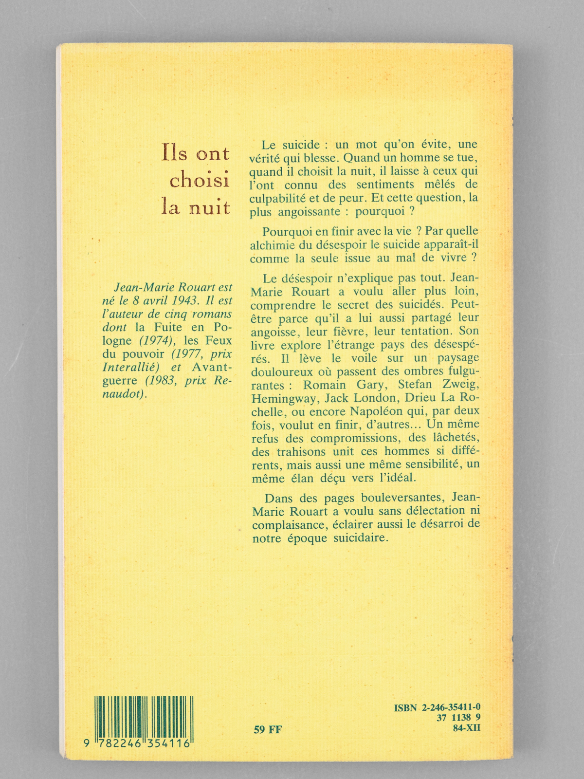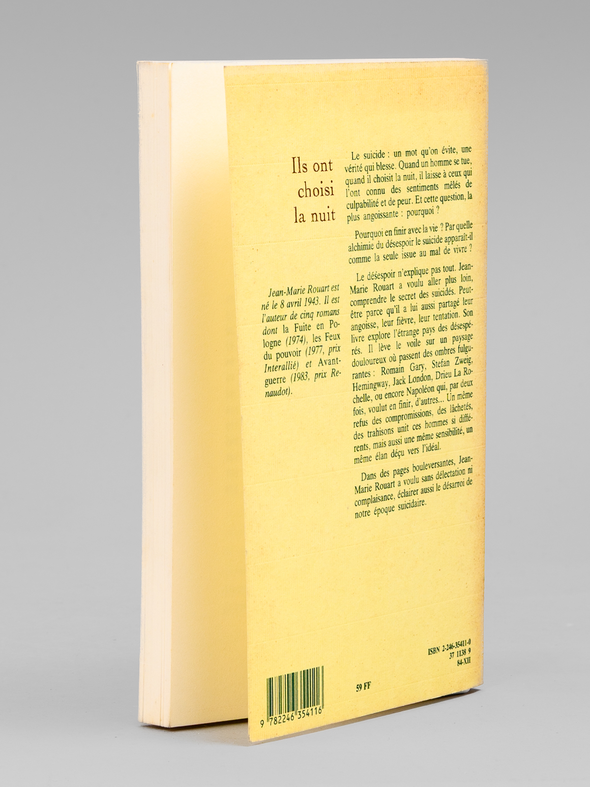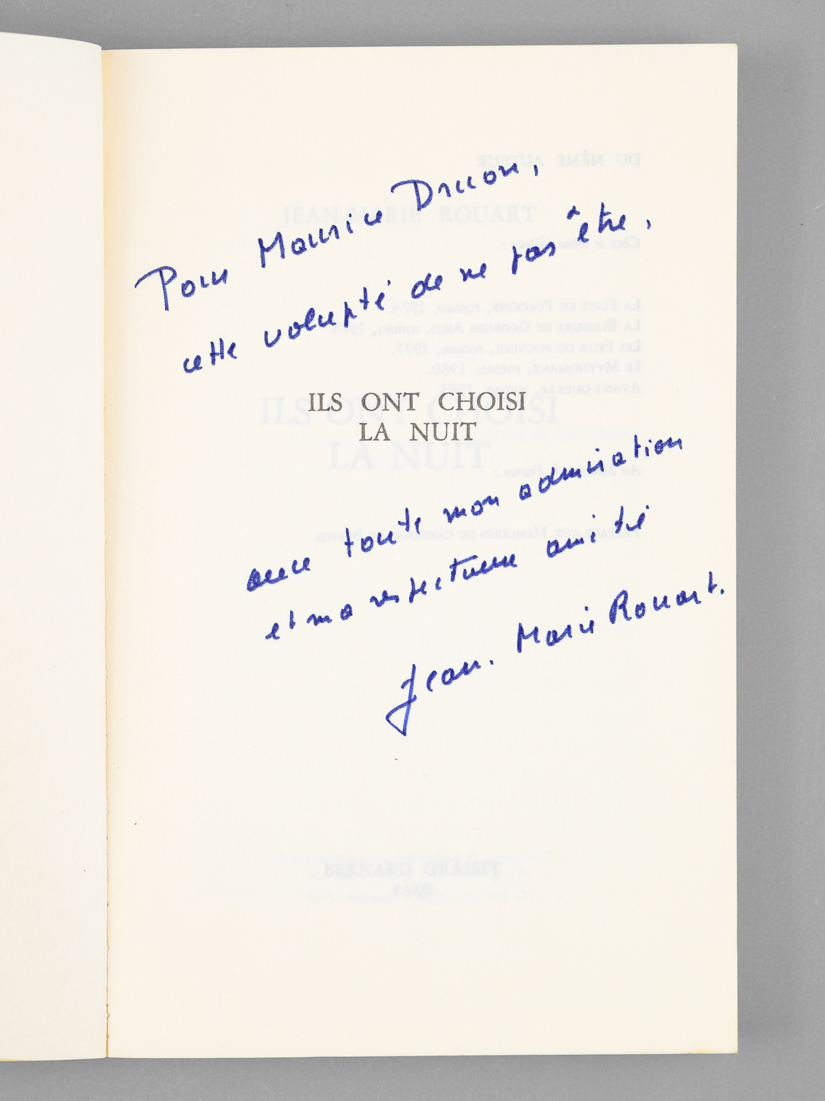 1 vol. in-8 br., Grasset, Paris, 1984, 177 pp. Commentaire : Bel envoi de Jean Marie-Rouart 'Pour Maurice, cette volupté de ne pas être [ ... ]. Bon état (couv. lég. frottée) pour cet exemplaire de superbe provenance : de la bibliothèque du grand écrivain Maurice Druon, Secrétaire Perpétuel de l'Académie Française de 1985 à 1999