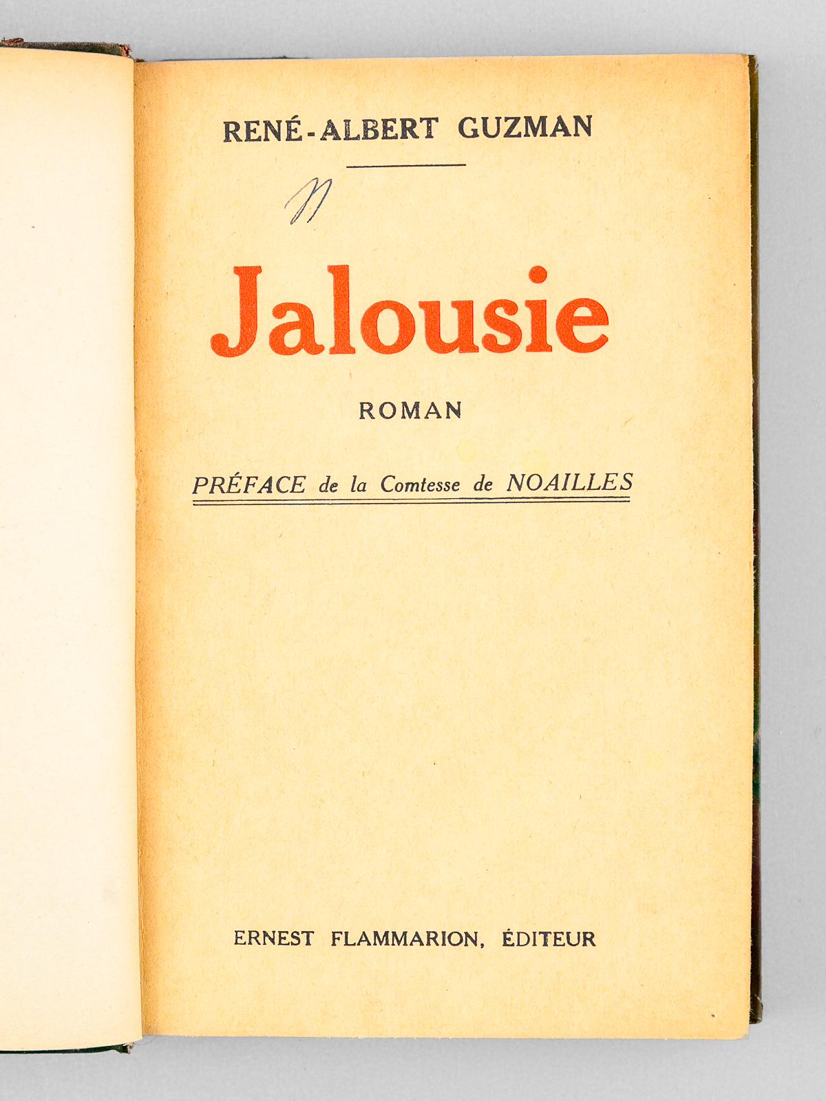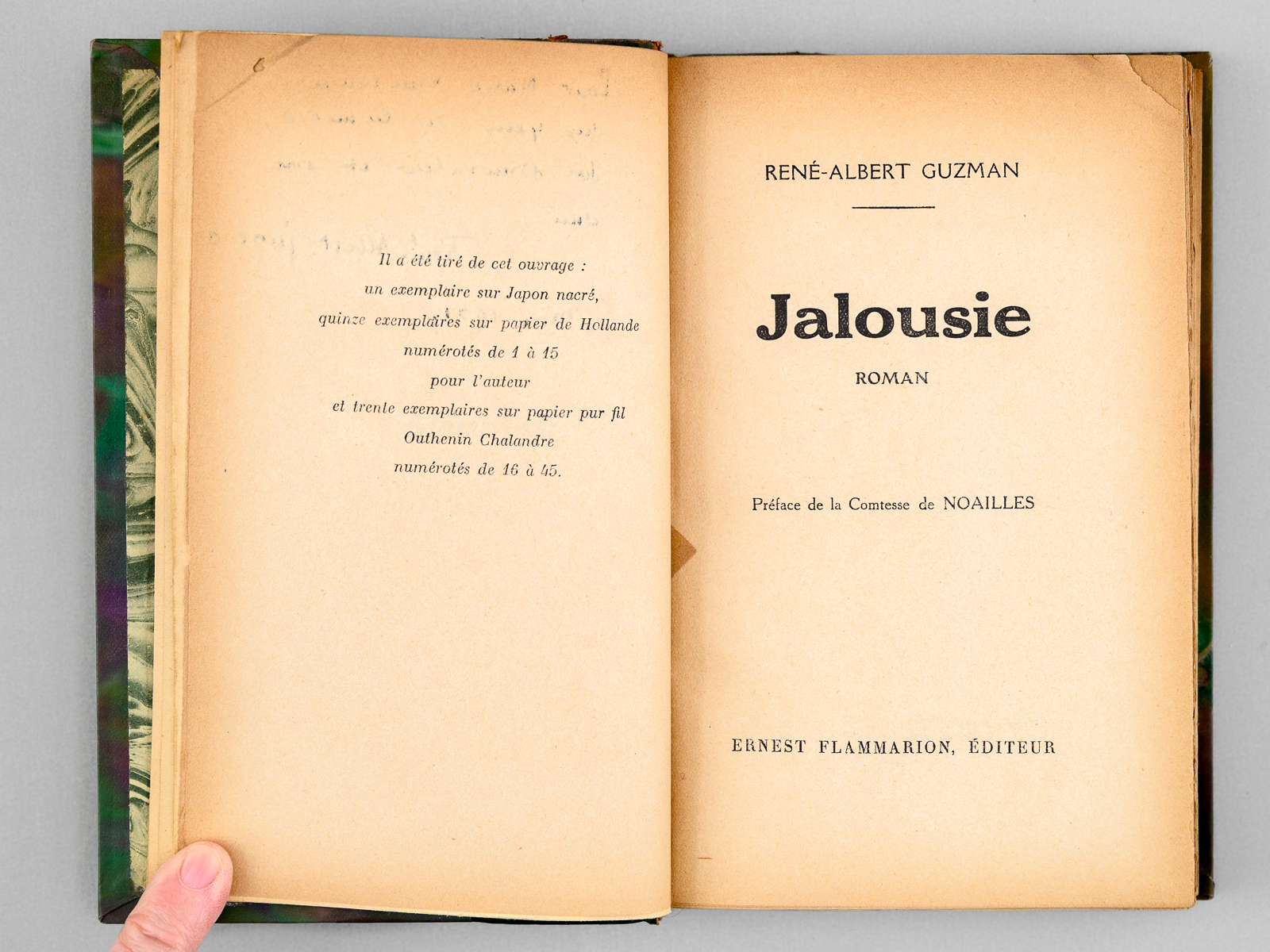 Jalousie - roman [ Exemplaire dédicacé par l'auteur à Marie Laurencin ]