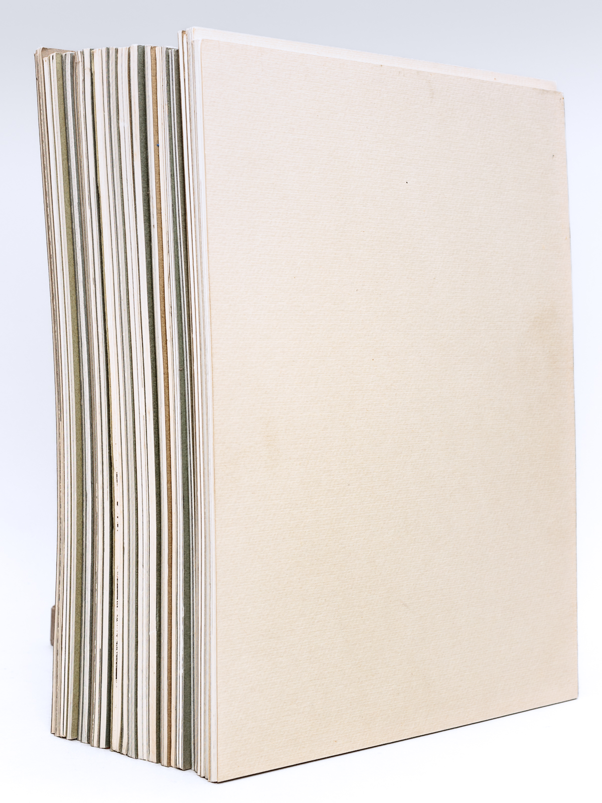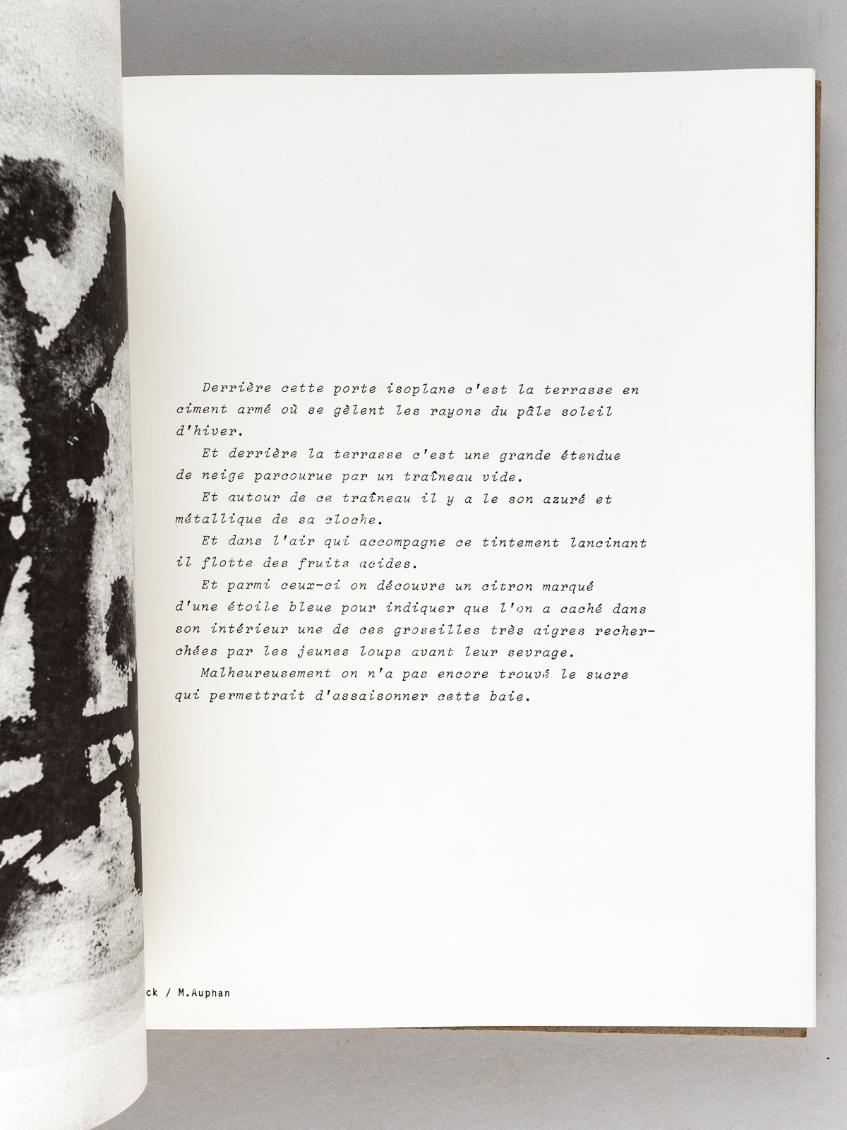 29 numéros (dont 4 doubles) en 24 vol. in-4 br. (thermocollés), Librairie Le Minotaure, 1974-1981. Détail des numéros : N° 1, novembre 1974 : Philippe Soupault, Angèle Vannier, Marcel Jacno, Evelyn Ortlieb, Daniel Grojnowski, Jean-Pierre Ghysels, Anne-Marie Christin, Jean-Pierre Jasz, Philippe Clerc, Jacqueline Sublet, Danièle Lazarevsky, Monique Boucher, Georges Couroupos, Marie-Noëlle de Torhout, Ernesto Lopez-Pino, Georgette Simon ; N° 2, hiver 1974-1975 : Elbio Mazet, Julio Moncada, Santenac, Christiane Raiga, Michel Chaudière, Léon Zack, Michel Auphan, André Vigneau, Michelle Thirion, Francine Van Hove, Louis Simon, Abdallah Benanteur, Danièle Lazarevsky, Jean-Marie Durand, Morio Taouroumi, Anne Spiteri, Georges Robert ; N° 3 : printemps 1975 : Dussaut, Jean B. Delahaye, Carlo Berte, Giuliano Modesti, Werner Lambersy, Danièle Lazarevsky, Monique Boucher, Enrique Chifflet, Georges Robert, Jeanne Bessière, Marie-Noëlle de Torhout, Ernesto Lopez-Pino, Marcel Jacno, Angèle Vannier, Georgette Simon, Anna Shanon ; N° 4, été 1975 : L'écriture et l'image dans le monde arabe. Par Jacqueline Sublet. Choix de textes et traduction : Georges Douillet. Calligraphies originales : Ghani Alani ; N° 5, automne 1975 : Les passages de Paris. Daniel Mauroc, Philippe Soupault, Jean-Vincent Verdonnet, Daniel Grojnowski, Geneviève Fourcade, Michelle Bloch, Denise Borias, Anne-Marie Christin, Gaëtan Picon. Danièle Lazarevsky, Photographies ; N° 6, hiver 1975-1976 : Typo-graphies. Guy Lévis-Mano, Adrian Frutiger, Michel Butor, Raymond Gid, René Lamoureux, Marcel Jacno, Jean Larcher, Pierre Duplan, Henri Pichette, Gérard Blanchard, Maximilien Vox, Massin, Jacques Garamond. Réalisation : Marcel Jacno ; N° 7, printemps 1976 : Bertrand Halff, Evelyn Ortlieb, Werner Lambersy, Francine Van Hove, Salbris, Pierre Maillard, Roger Cornaille, Simone Le Bret, Jean-Paul Hameury, Georgette Simon, Paolo Pozzo, Marfaing, Garicia Mulet, Béatrix Balteg, Marie-Noëlle de Torhout, Françoise Mairey, Osolin, Pierre Daboval, Jacques Lepage, Danièle Lazarevsky : N° 8, été 1976 : Sumer. Choix de textes et traductions : Jean-Marie Durand. François Sagnes, Photographies ; N° 9, automne 1976 : Marc Soriano, Bestiaire. Danièle Lazarevsky, Photographies ; N° 10, hiver 1976-1977 :Agnès Vannier, L'écharpe rouge et les chiens bleus ; N° 11-12, printemps-été 1977 : Manifesti. Affiches italiennes. Les élections de juin 1976. Marcel Jacno, Paul-Michel Villa, Enrico Fulchignoni, Boni de Torhout. Paul-Michel Villa, Photographies ; N° 13, automne 1977: Assemblages. Pietro Vanni, Liliane Giraudon, Agathe Eristov Gengis Khan, Alexandre Chem, Françoise Rando, Anne-Marie Christin, Pierre Cordier, Philippe Clerc, André Stas, Françoise Mairey, Lariega, Marcel Bénabou, Paul Fournel, Harry Mathews, Marie-Nöelle de Torhout, Daniel Giffar ; N° 14, hiver 18977-1978: Victor Segalen. Claudine Bouretz, Eliane Formentelli, Photographies et montage ; N° 15-16, printemps-été 1978 : Raymond Gid. Rencontres d'art-thérapie. Avec linogravure et dessin en milieu psychiatrique, présentation et réalisation de Raymond Gid ; N° 17, automne 1978 : Toughra. Paraphes des souverains ottomans. Réalisation Jacqueline ; N° 18, hiver 1978-1979 : Philippe Clerc, Journal mai-décembre 77 ; N° 19, printemps 1979 : Tentativa de Vida y muerte de un espantapajaros [Vie et mort d'un épouvantail] Réalisation Antonio García-Múlet ; N° 20, été 1979 : Chiffres : Roger Excoffon, Jose Mendoza y Almeida, Adrian Frutiger, Jacques Garamond, Claude Mediavilla, Marcel Jacno, Jean Larcher. Réalisation Marcel Jacn ; N° 21, automne 1979 : Denise Borias, Poèmes. Réalisation Evelyn Ortlieb ; N° 22, hiver 1979-1980 : Marc Soriano, Le Doppelgänger. Nouvelle. Danièle Lazarevsky. Photographies. ; N° 23-24, printemps-été 1980 : Fragments d'une musique immédiate de la Modern Art Agency. Milada Cerny, Hermine Vogl-Sernheim, Emmy Stihl, Heidi Wenzel, Andréa Camenisch, Margrit Wyss, Rosalba di Lorenzo, Myriam Seele, Yolanda Myers, Roberto Altmann. Partitions mises en lumière par Brigitte Bürki à la demande de Anne-Marie Christin ; N° 25, automne 1980 : Philippe Treuschel, Écrits-Photos ; N° 26, hiver 1980-1981 : Calligraphie japonaise. Réalisation Elisabeth Frolet ; N° 27, printemps 1981 : Jean Laude, Le dernier mot. Poème. Mechtilt. Noirs ; N° 28-29, été-automne 1981 ; Daniel Giffard, Yves Mairot, Michel Arouimi, Evlyn Ortlieb, Philippe Treuschel, Anne-Marie Christin, Gabrielle di Falco, Antonio García-Múlet, Francine Van Hove, Lucette Pelillo, Hélène Garcia Léon, Georgette Simon, Anne Spiteri, Mechtilt, Jean Laude, Philippe Clerc, Bernard Dubourg, Danièle Lazarevsky, Jean-Pierre Jasz.