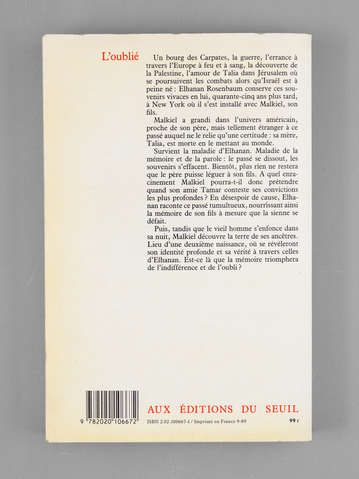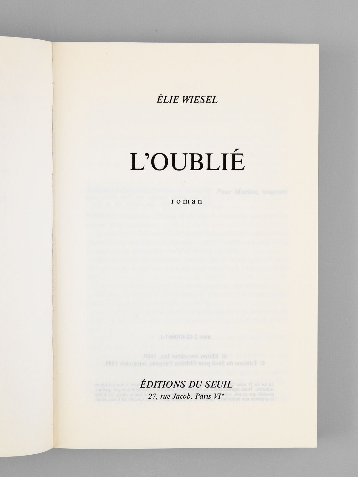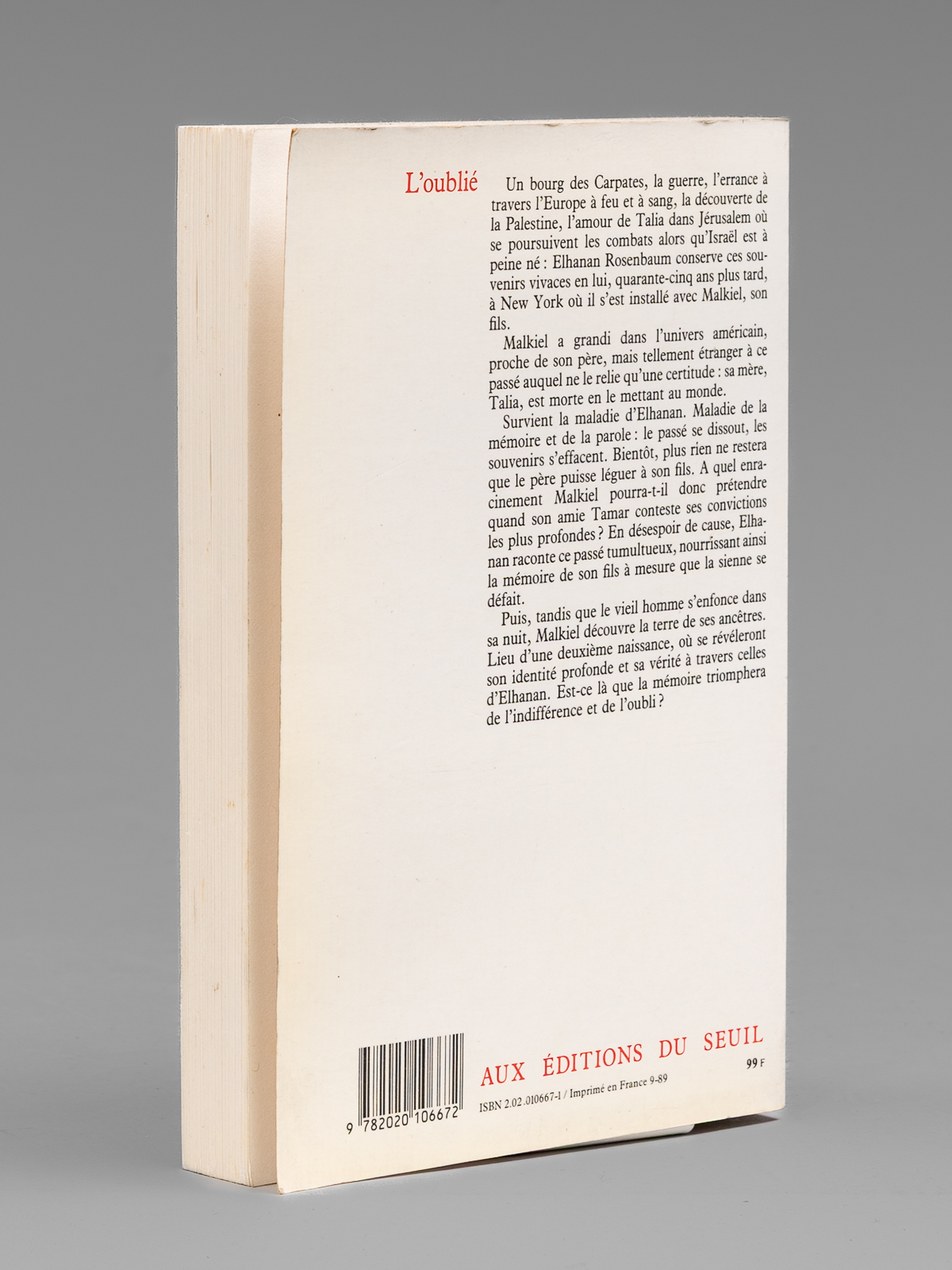 L'oublié - roman [ Livre signé par l'auteur - Envoi à Maurice Druon ]