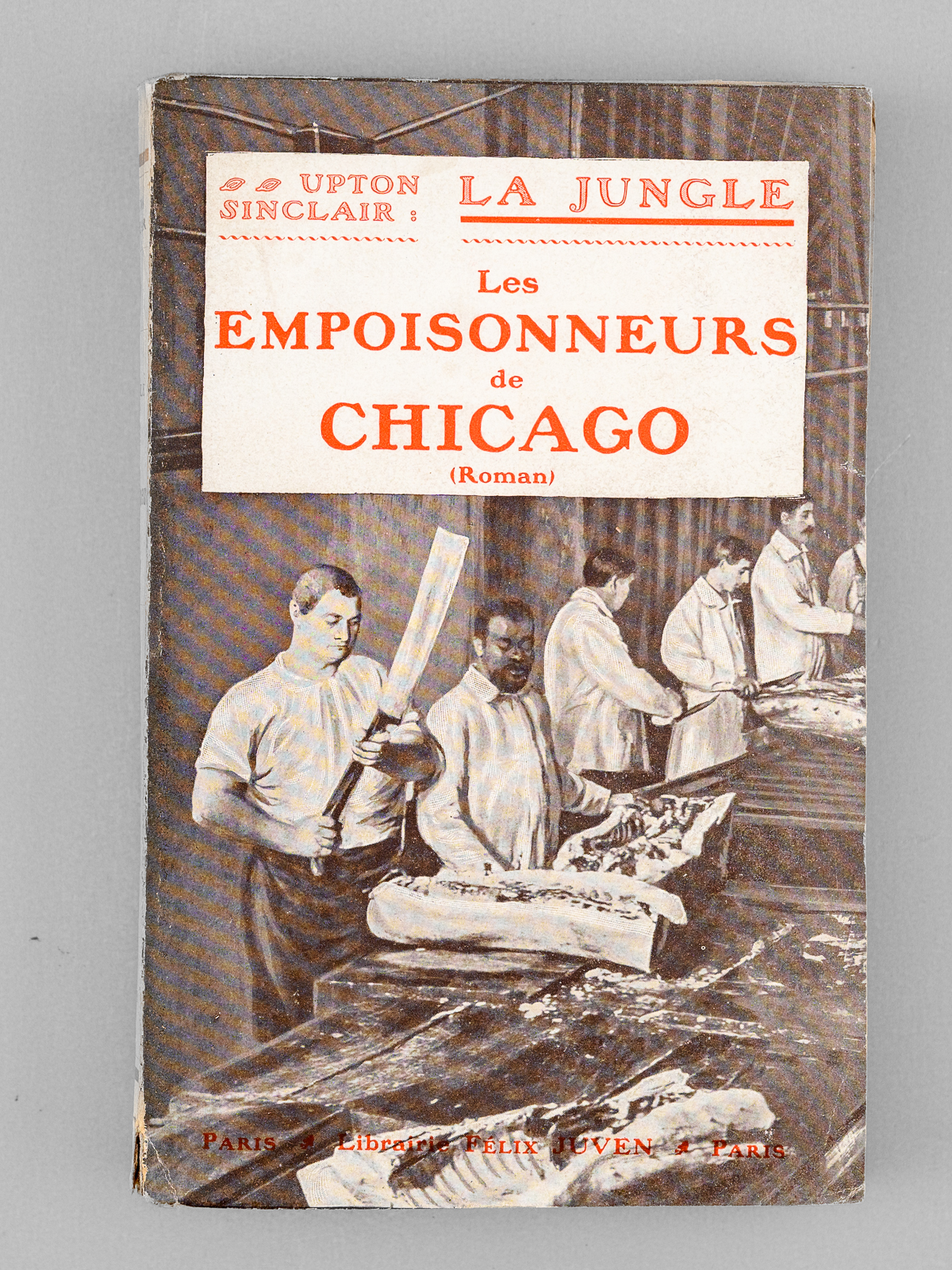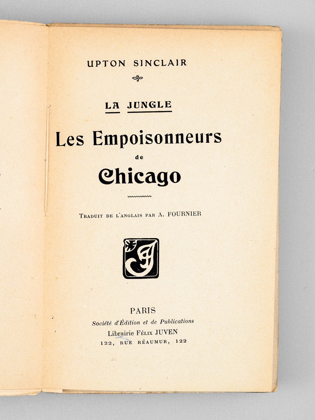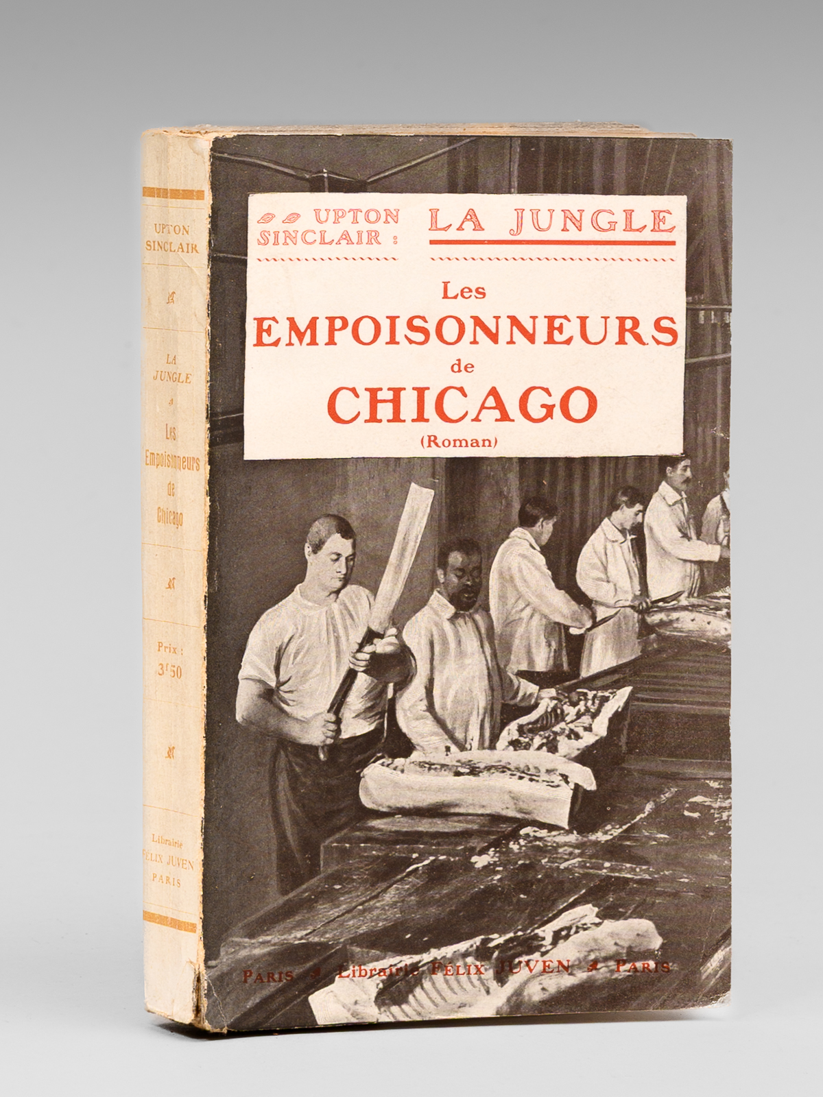 E.O. de la traduction, traduit de l'anglais par A. Fournier, Société d'Édition et de Publications, Librairie Félix Juven, Paris, s.d. (1906), 537 pp. Commentaire : Bon état (couv. lég. frottée, petite manque en bas de dos, très bon état par ailleurs) pour ce rare exemplaire de l'édition originale française du roman qui apporta la célébrité à l'écrivain Upton Sinclair. Dans ce livre, Sinclair raconte le drame d'une famille d'immigrants venus de Lituanie, confrontés aux pratiques des abattoirs de Chicago. Cet ouvrage, en mettant en lumière les pratiques de ces abattoirs, suscita le création d'une commission d'enquête fédérale (la commission Neill-Reynolds), qui aboutit à la loi dite FMIA (Federal Meat Inspection Act) de 1906. Cette loi permit enfin de commencer à combattre les pratiques mafieuses de la Meat Packing Industry de Chicago et d'ailleurs.