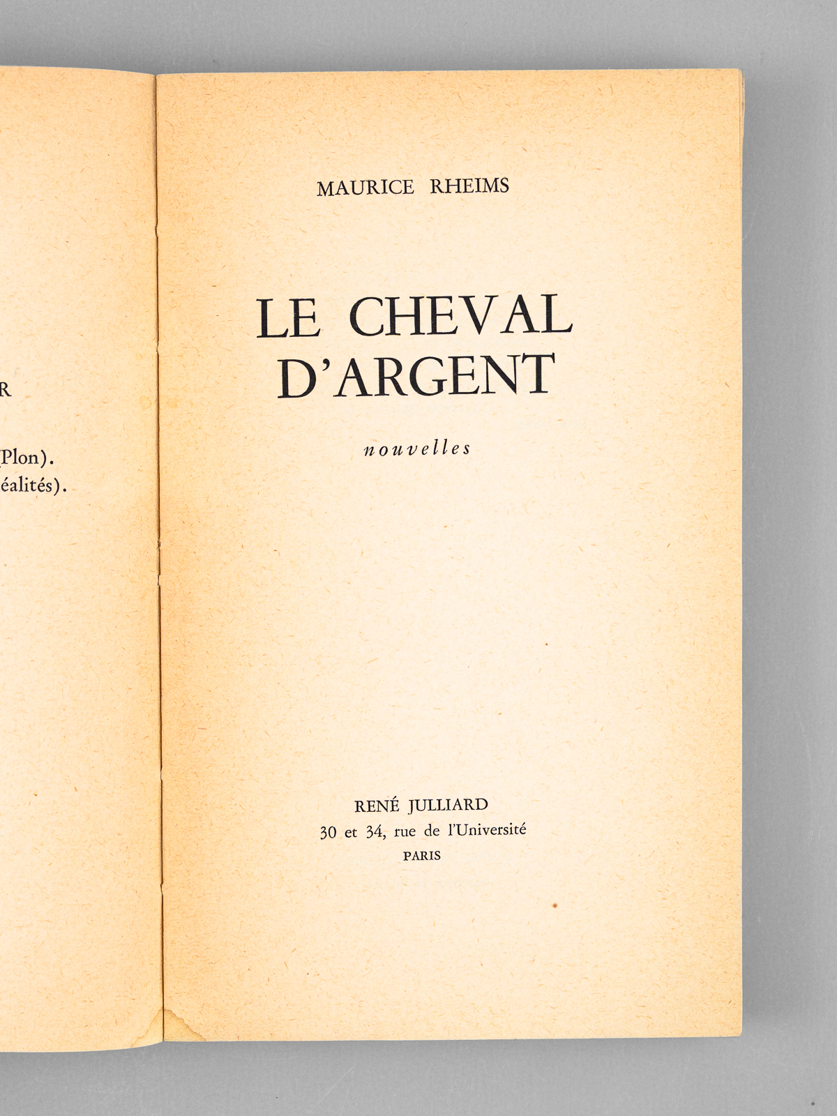 Exemplaire du service de presse marqué S.P., 1 vol. petit in-8 br., Julliard, Paris, 1962, 231 pp. Commentaire : Envoi de Maurice Rheims : 'Alors collègue, tu vois, je 'fais' aussi dans la nouvelle. Décidement, nous ne sommes pas sans avoir les mêmes goûts, ce qui ne veut pas dire que nous partagions nos passions'. Etat très satisfaisant (petites mouill. en couv. , qq. rouss. en tête, bon exemplaire par ailleurs) pour cet exemplaire de superbe provenance : de la bibliothèque du grand écrivain Maurice Druon, Secrétaire Perpétuel de l'Académie Française de 1985 à 1999