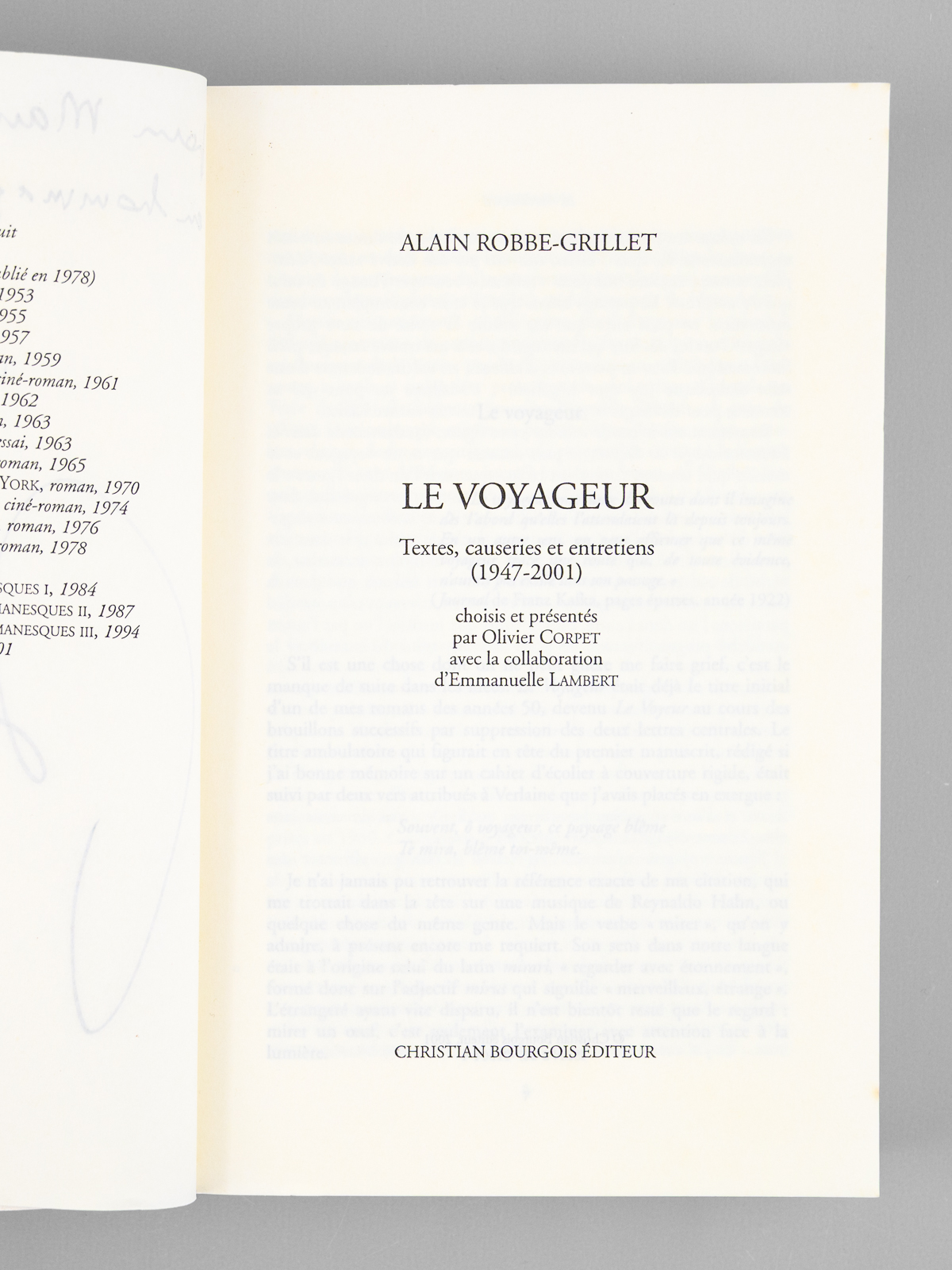 Le Voyageur. Textes, causeries et entretiens (1947-2001) [ Livre dédicacé par l'auteur à Maurice Druon ]photo n°2 : Le Voyageur. Textes, causeries et entretiens (1947-2001) [ Livre dédicacé par l'auteur à Maurice Druon ]photo n°3 : Le Voyageur. Textes, causeries et entretiens (1947-2001) [ Livre dédicacé par l'auteur à Maurice Druon ]photo n°4 : Le Voyageur. Textes, causeries et entretiens (1947-2001) [ Livre dédicacé par l'auteur à Maurice Druon ]photo n°5 : Le Voyageur. Textes, causeries et entretiens (1947-2001) [ Livre dédicacé par l'auteur à Maurice Druon ]photo n°6 : Le Voyageur. Textes, causeries et entretiens (1947-2001) [ Livre dédicacé par l'auteur à Maurice Druon ]photo n°7 : Le Voyageur. Textes, causeries et entretiens (1947-2001) [ Livre dédicacé par l'auteur à Maurice Druon ]photo n°8 : Le Voyageur. Textes, causeries et entretiens (1947-2001) [ Livre dédicacé par l'auteur à Maurice Druon ]photo n°9 : Le Voyageur. Textes, causeries et entretiens (1947-2001) [ Livre dédicacé par l'auteur à Maurice Druon ]photo n°10 : Le Voyageur. Textes, causeries et entretiens (1947-2001) [ Livre dédicacé par l'auteur à Maurice Druon ]
