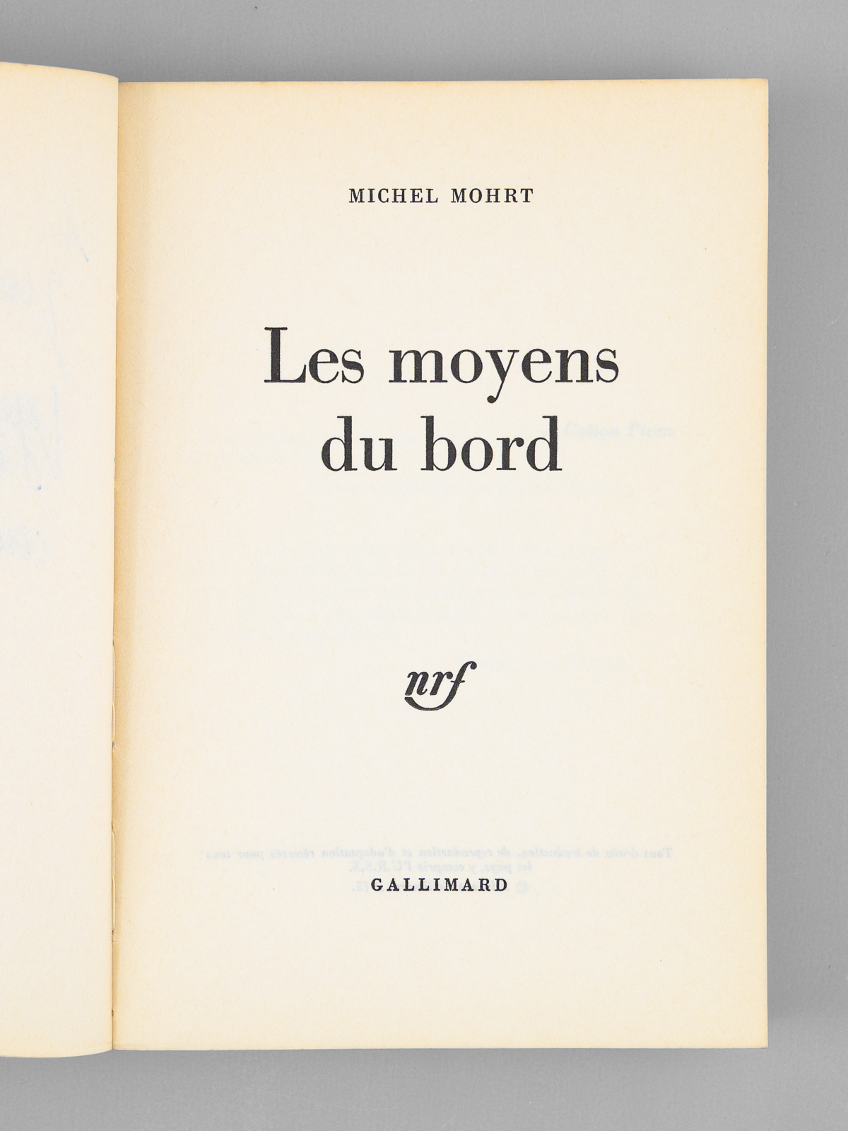 Les Moyens du Bord. Roman [ Livre dédicacé par l'auteur à Maurice Druon ]