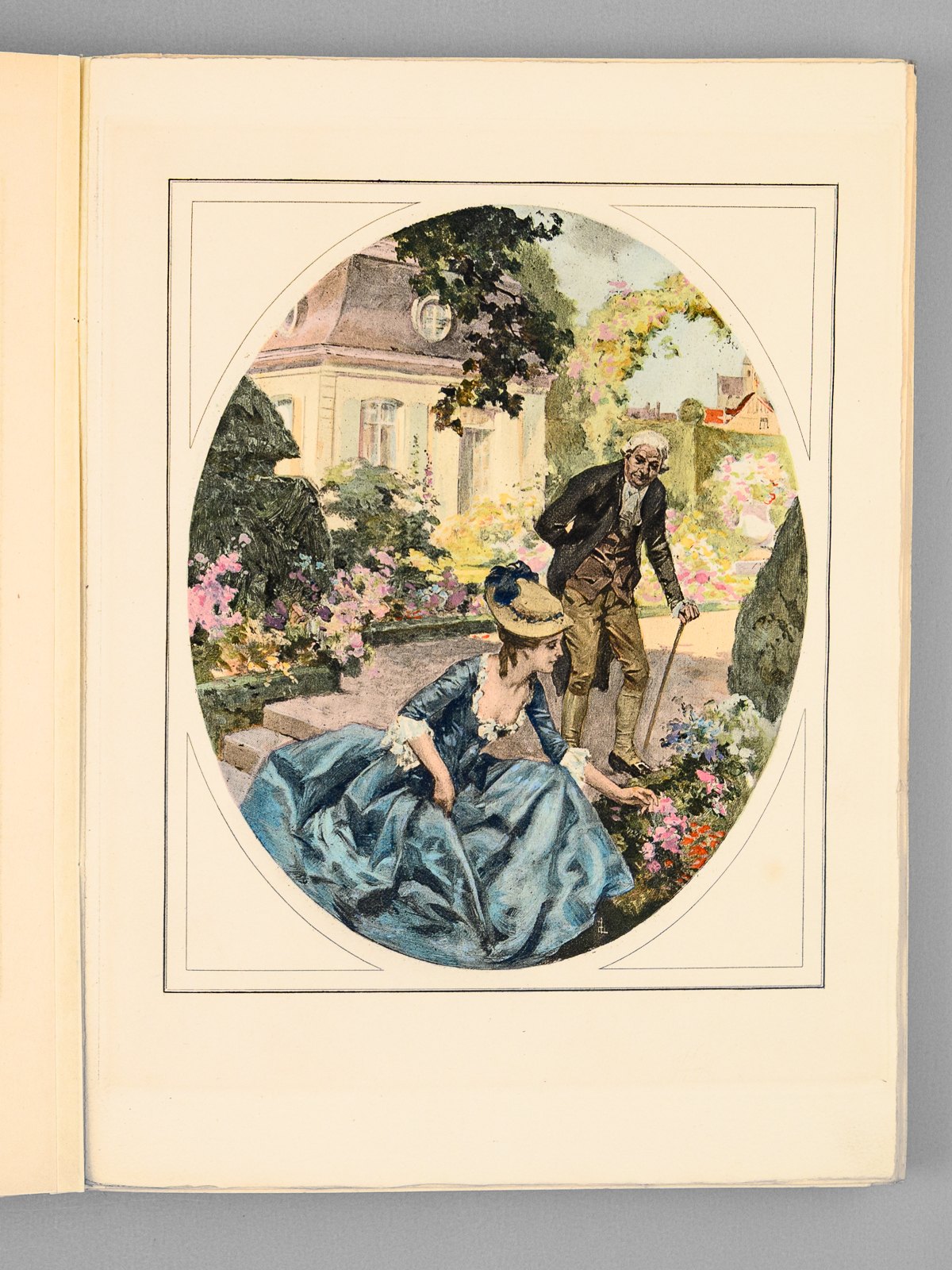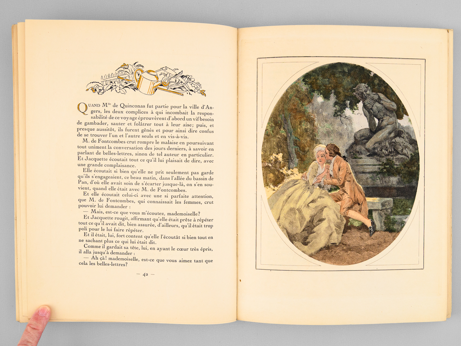Illustrations de René Lelong, un des 100 exemplaires sur Japon (après un exemplaire unique et 25 sur vélin), exemplaire nominatif (Mme Paul Heidelberg) contenant 3 états des hors-texte : l'état en noir, l'état en sanguine avec remarque et l'état en couleurs dans le texte, et 2 états des vignettes (en sanguine avec remarque et en noir dans le texte), 1 vol. grand in-8 jésus br. sous chemise cartonnée et étui, Librairie de la Collection des Dix, Vve Romagnol, 1930, 2 ff., 134 pp. et 5 ff. n.ch. avec 18 hors--texte en couleurs et la suite des planches sous chemise Commentaire : Bon état (sans pièce de titre à la chemise en dos, très bon état par ailleurs).