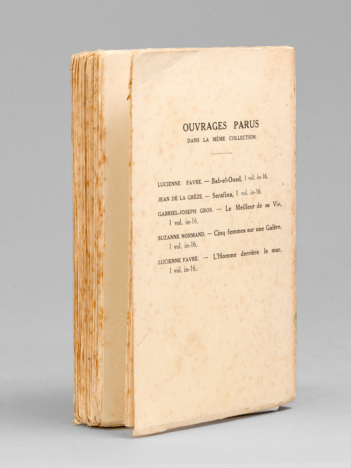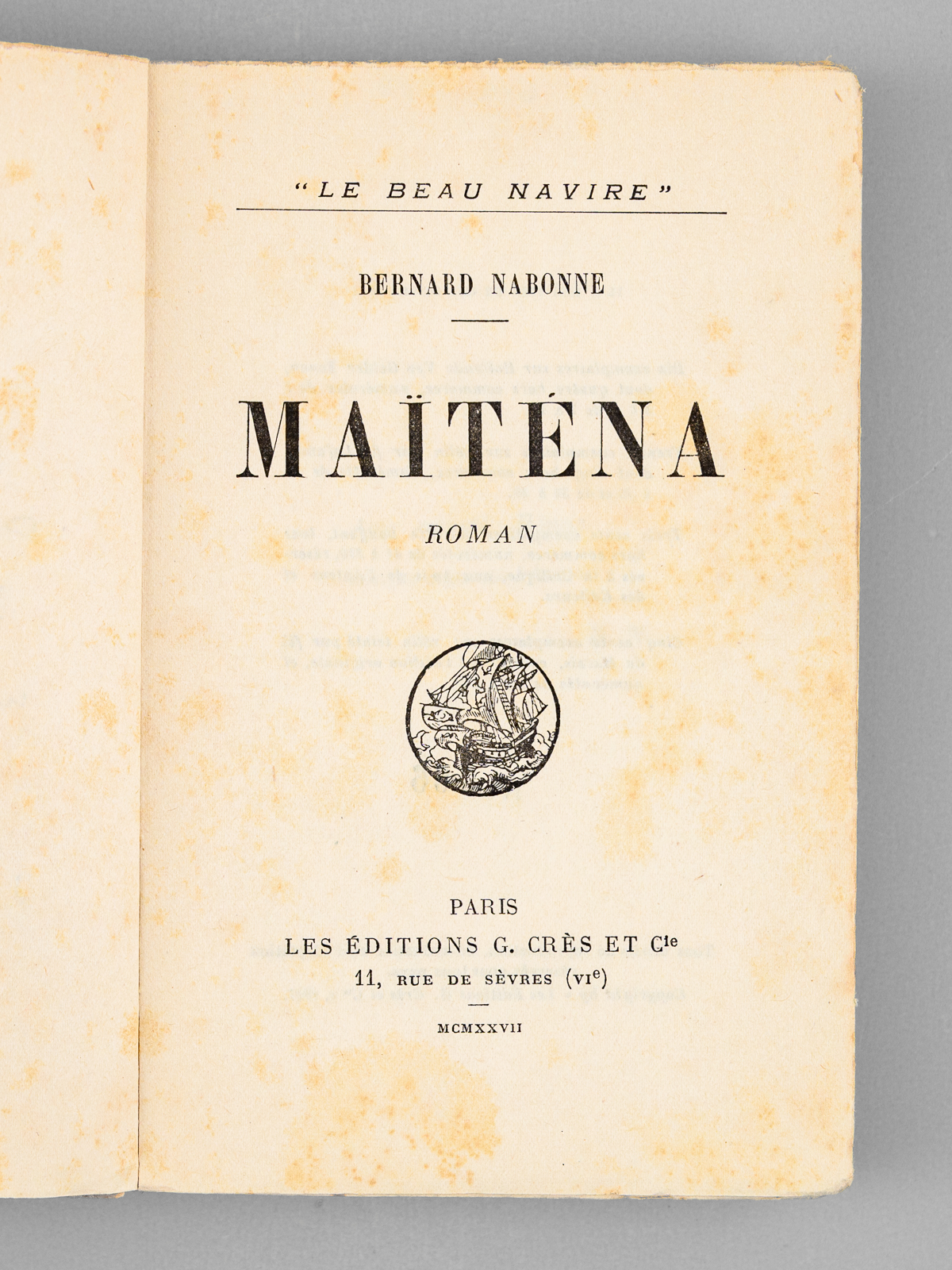 Un des 300 exemplaires numérotés de 41 à 340 sur alfa bouffant (n° 66), 1 vol. in-12 br., Collection « Le Beau Navire », Les Éditions G. Crès et Cie, Paris, 1927, 219 pp.