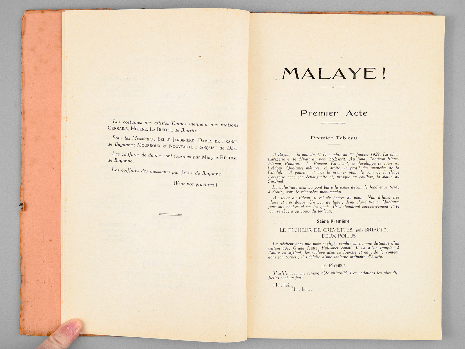 Malaye !! Fantaisie locale en 3 actes, 4 tableaux et 25 scènes-sketches ; Coupe et adaptations musicales de M. Emmanuel Broca ; Musique de Guy Marilys, L. Bossières et Pelabon ; Représentée pour la première fois au Th&ea - Auteur: GOMEZ, Benjamin ; PÉRIÉ, Georges - Année d'édition: 1929