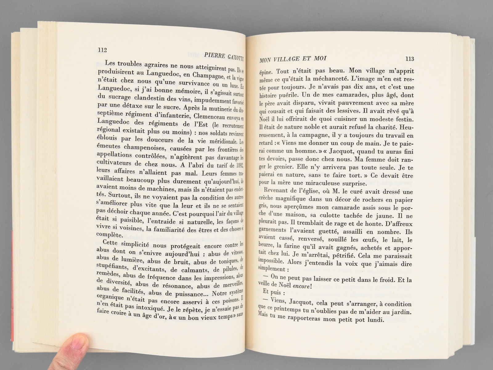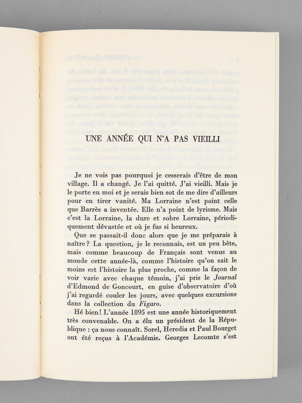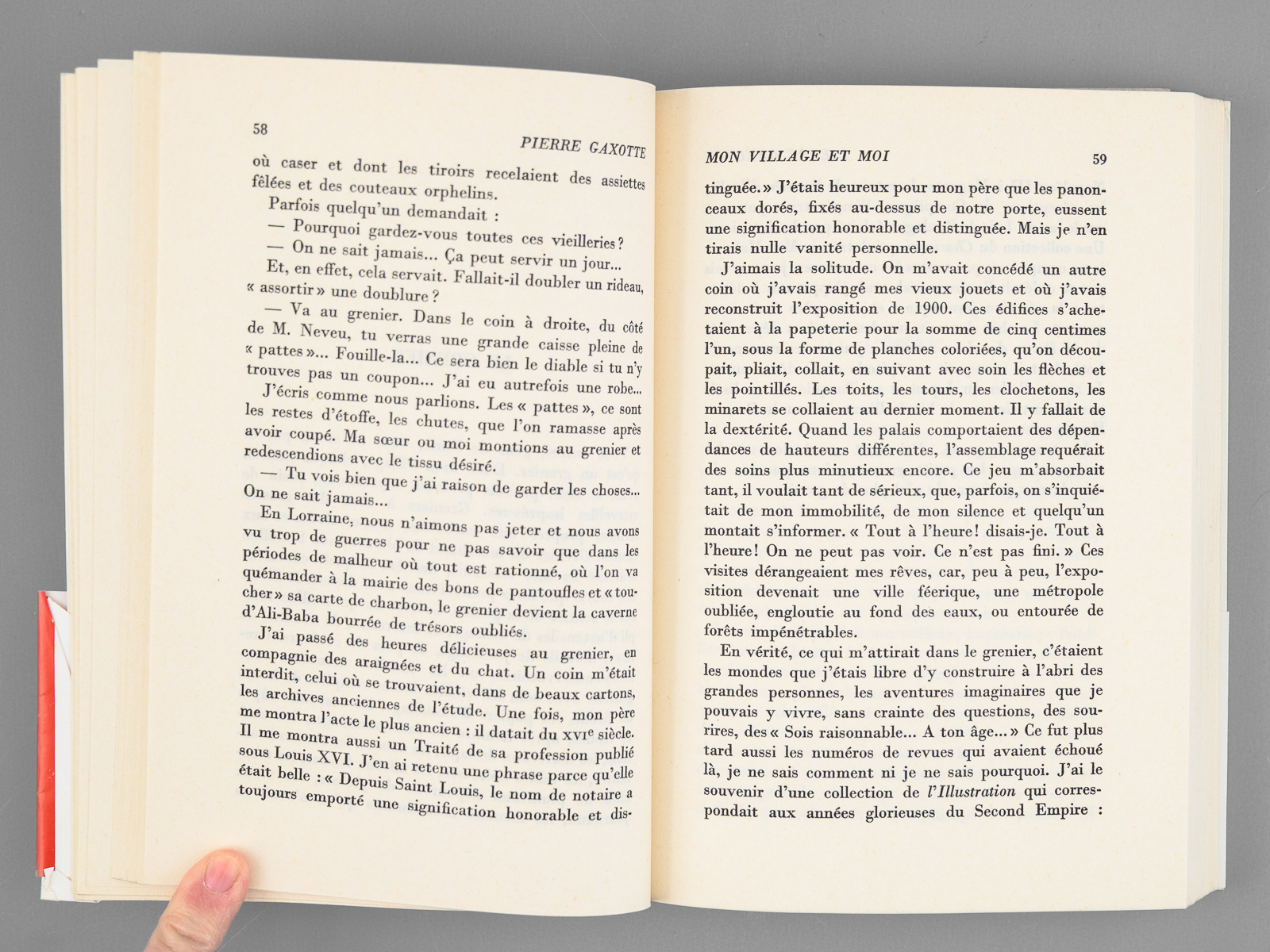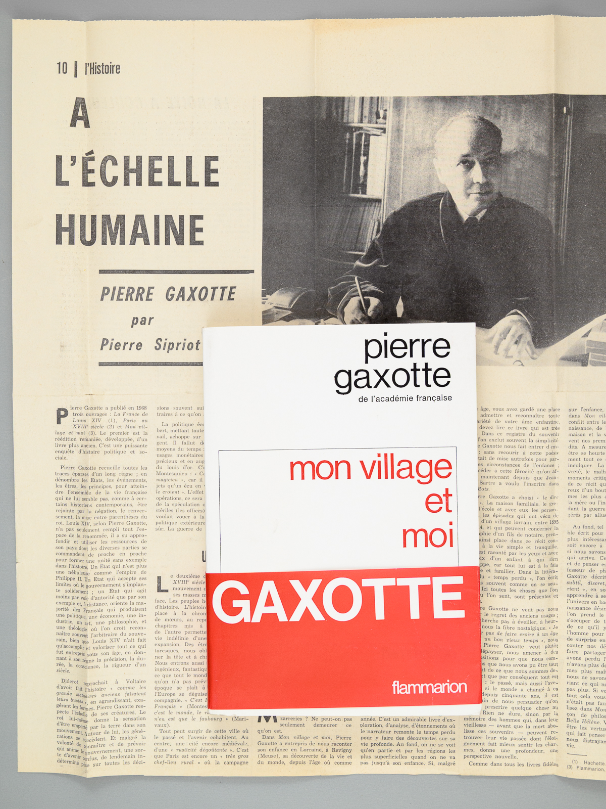 Commentaire : Bel envoi autographe de Pierre Gaxotte à M. C..L...R... 'qui ne connut qu'un Revigny 'gare régulatrice' pendant les années de cauchemar, ces miettes d'un temps plus aimable, dur parfois, mais où les choses étaient à leur place. Et les idées aussi. En hommage de sympathie'. Pierre GAxotte a également corrigé un nom dans le texte. Bon état pour cet exemplaire enrichi d'un bel envoi évoquant nommément le village natal de Pierre Gaxotte, Revigny-sur-Ornain, dans la Meuse.