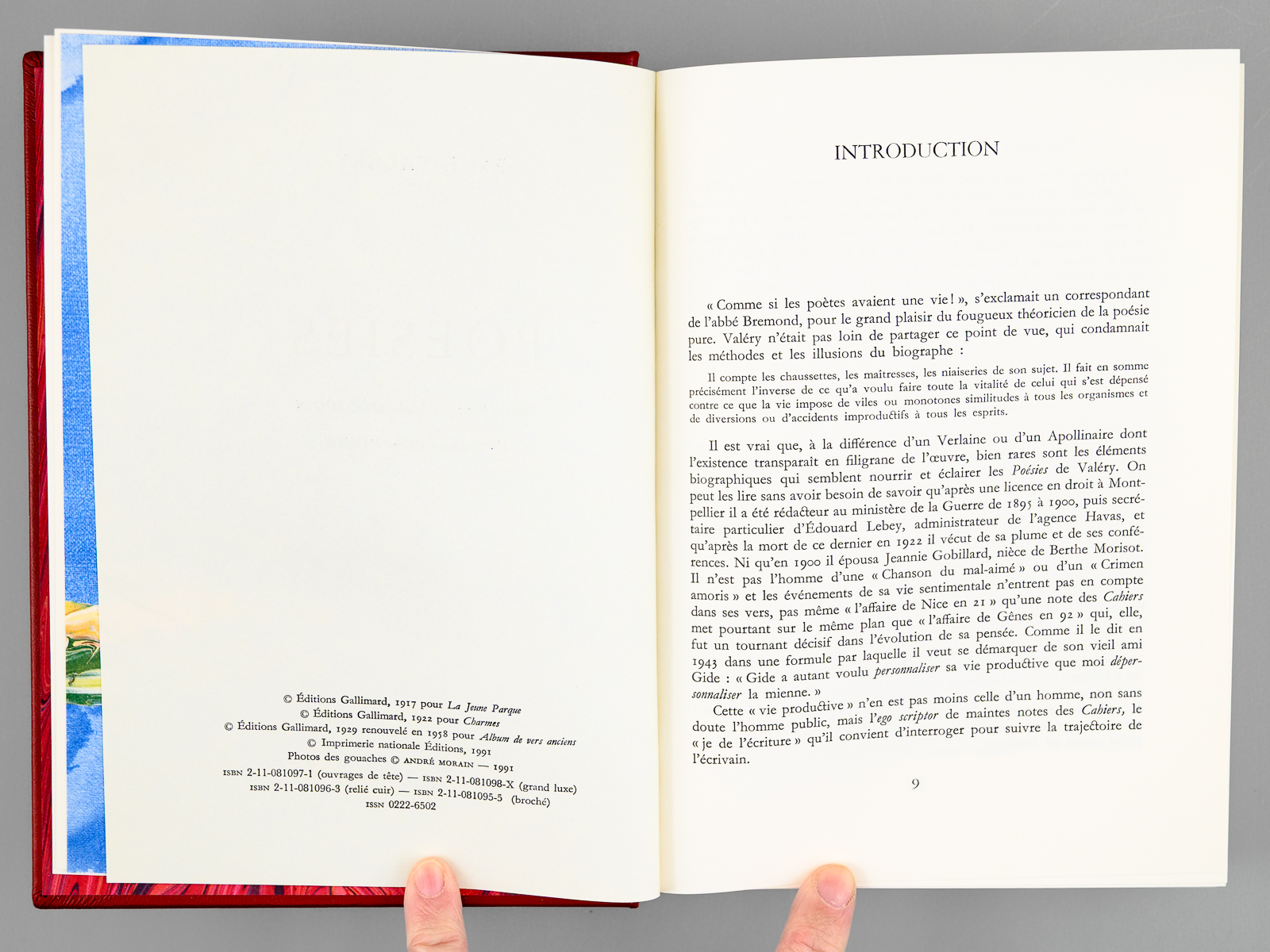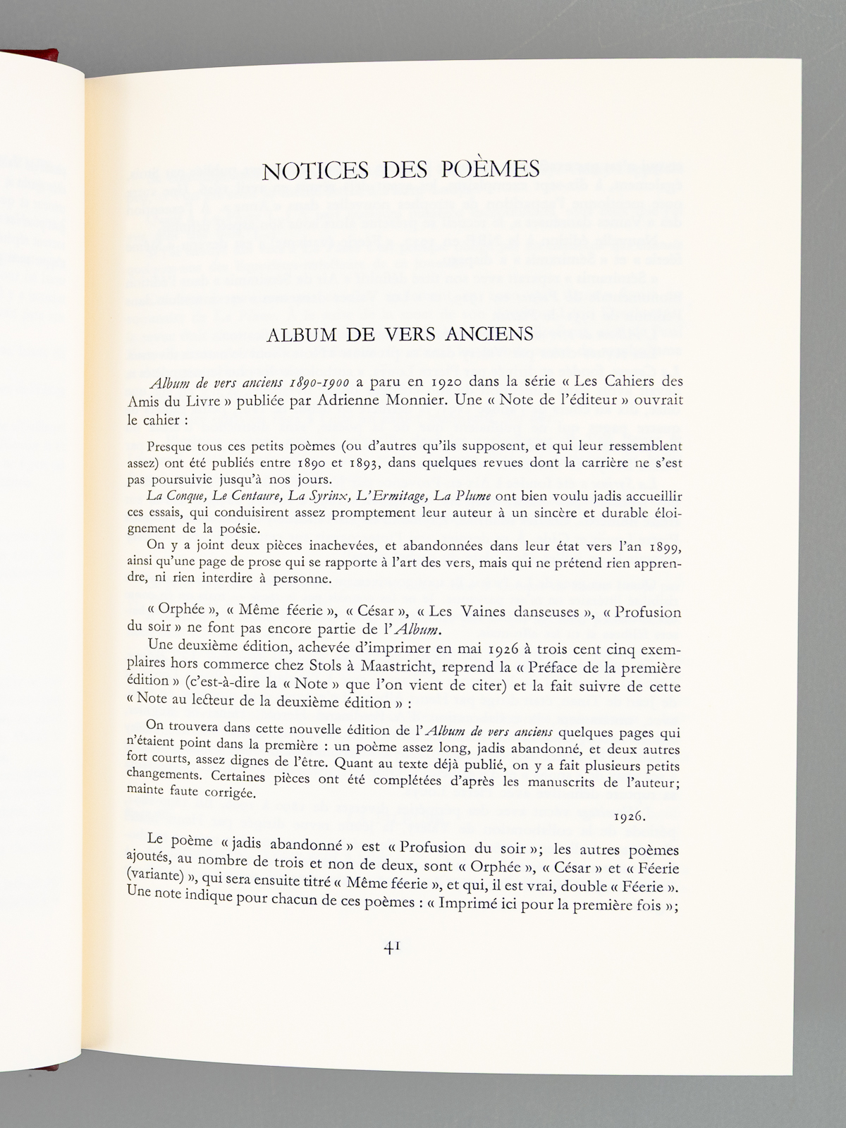 Texte présenté par Michel Décaudin, illustrations d'Olivier Debré, un des 5000 exemplaires sur papier d'édition de Rives numéroté, 1 vol. in-8 reliure pleine cuir rouge éditeur, dos à 4 nerfs dorés, tête dorée, coll. Lettres Françaises, collection de l'Imprimerie Nationale, Imprimerie Nationale Editions, Paris, 1992, 426 pp. Commentaire : Bel exemplaire