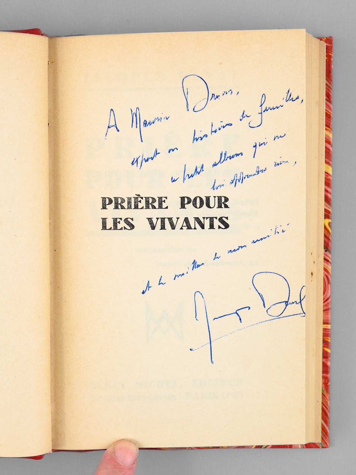 Prière pour les Vivants [ Livre dédicacé par l'auteur à Maurice Druon ]