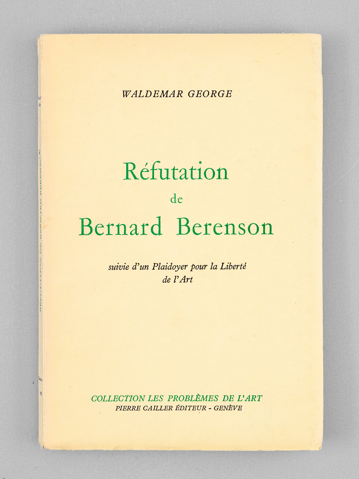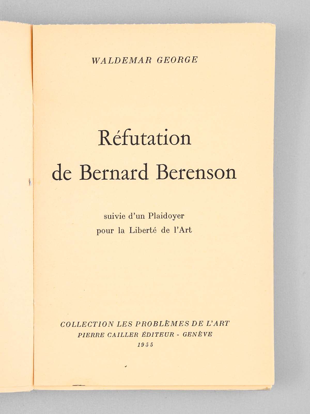 Réfutation de Bernard Berenson - suivi d'un Plaidoyer pour la Liberté de l'Art [ exemplaire dédicacé par l'auteur]. - Auteur: Waldemar George [ Jerzy Waldemar Jaroci ski, dit (1893-1970) ] - Année d'édition: 1955