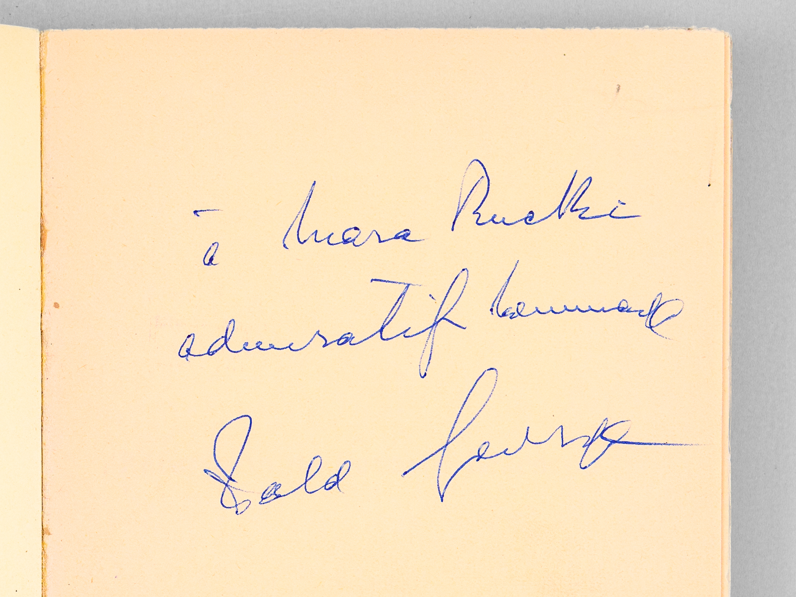 Envoi ms. de l'auteur, coll. les Problèmes de l'Art, Pierre Cailler éditeur, Genève, 1955, 157 pp. Commentaire : Très bon état pour cet ouvrage du critique d'art, d'origine polonaise, Waldemar George. Avec un envoi à l'artiste peintre et illustratrice Mara Rcuki (1920-2005), fille du scuplteur d'origine polonaise Jean Lambert-Rucki (1888-1967) : 'A Mara Rucki, admiratif hommage'