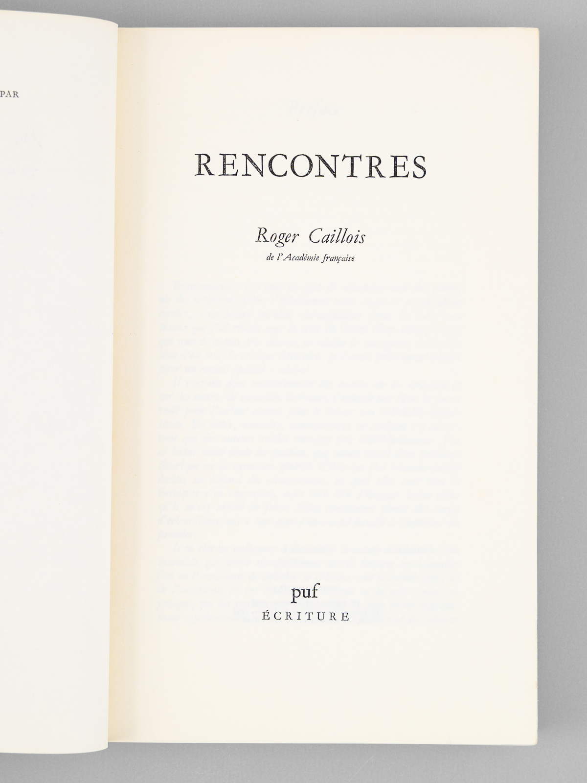 Rencontres [ Livre dédicacé par l'auteur à Maurice Druon ]