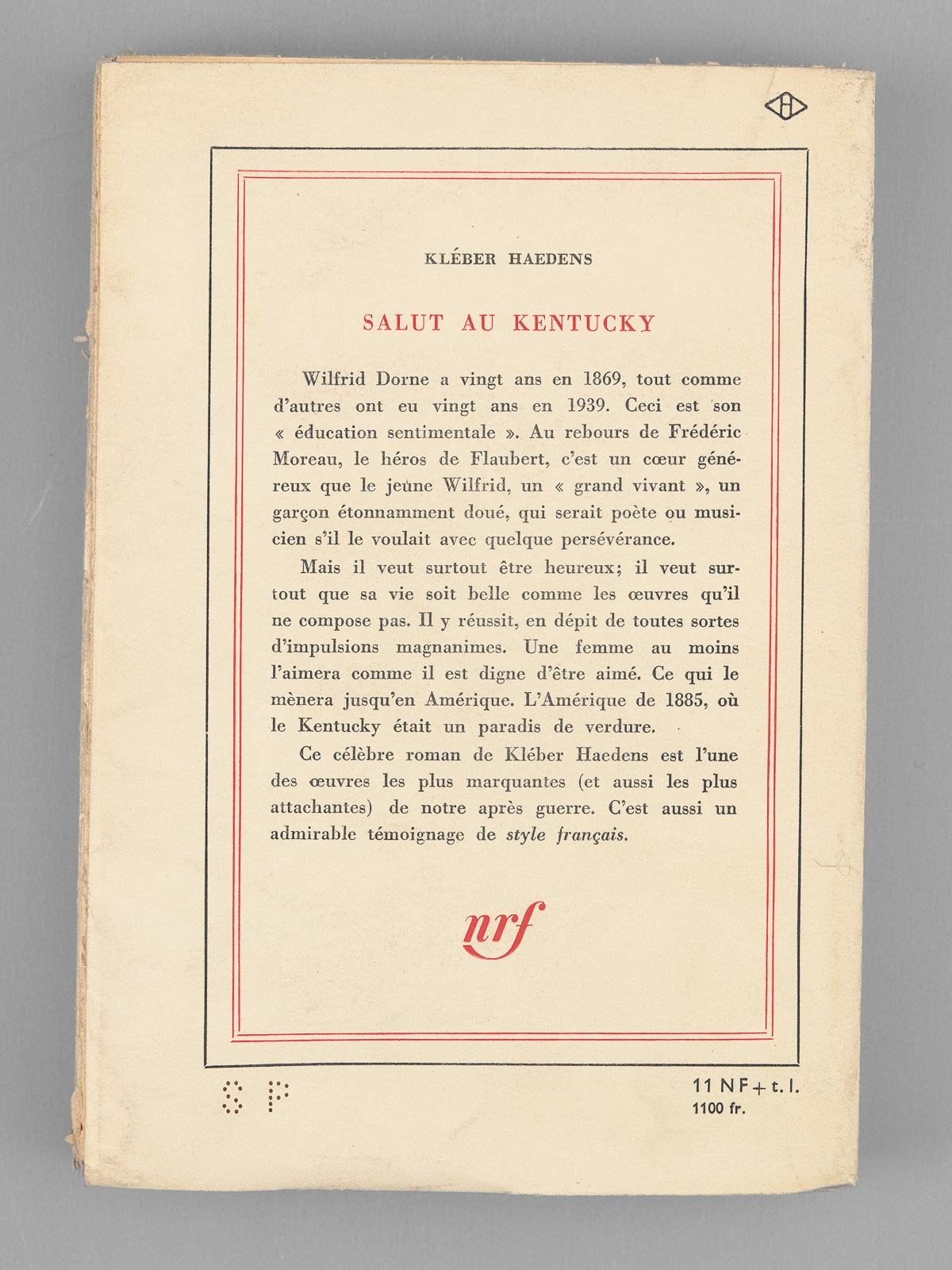 Exemplaire du service de presse marqué S.P., 1 vol. in-8 br., NRF, Gallimard, Paris, 1960 Commentaire : Exemplaire du service de presse, complet du 'Prière d'insérer' et d'une carte d'hommage de l'auteur, absent de Paris. Bon état