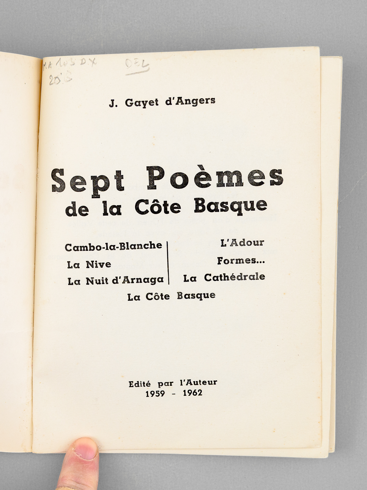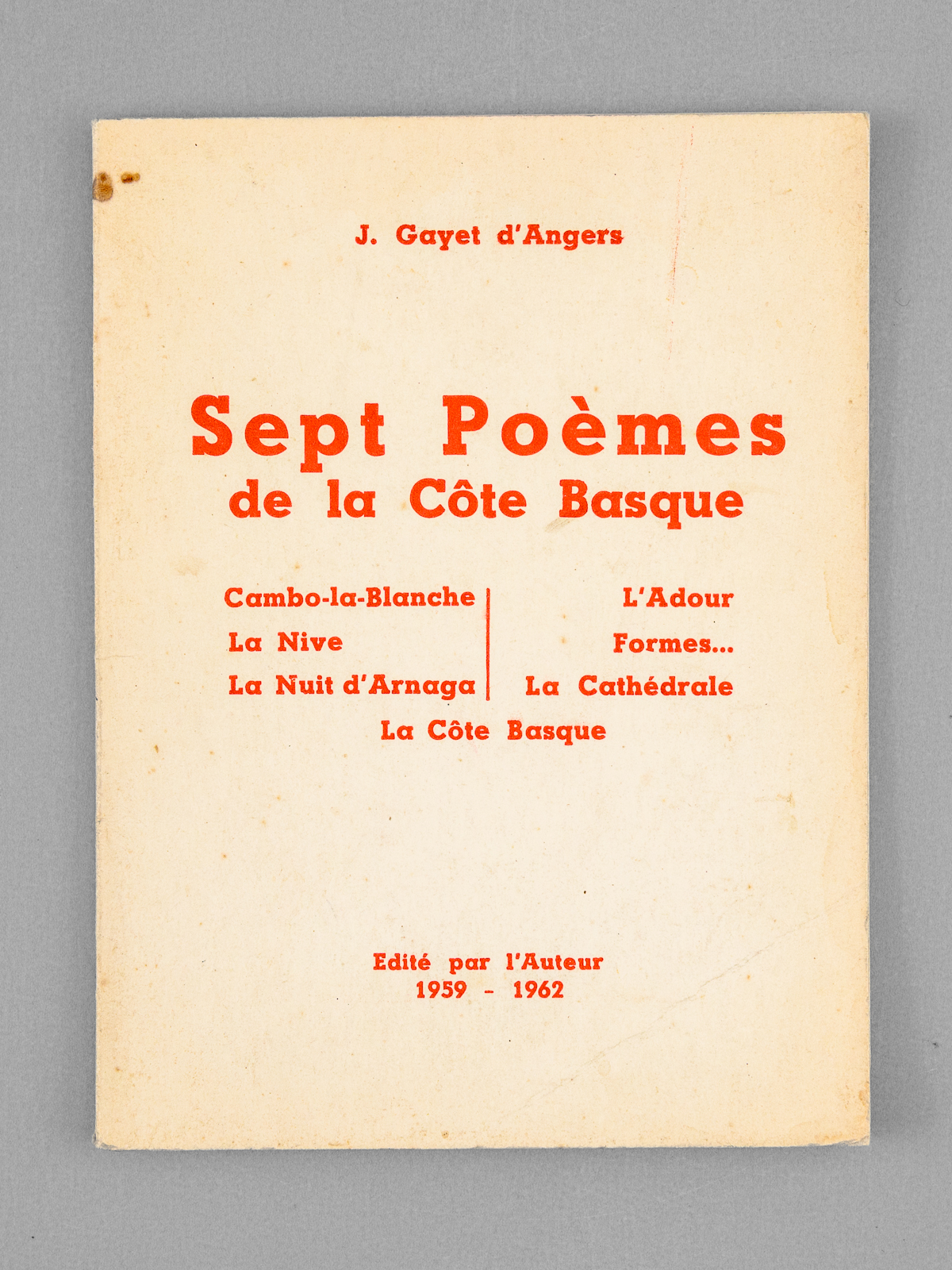 1 brochure in-12, Edité par l'Auteur, Imprimerie Darracq, Bayonne, 1959-1962