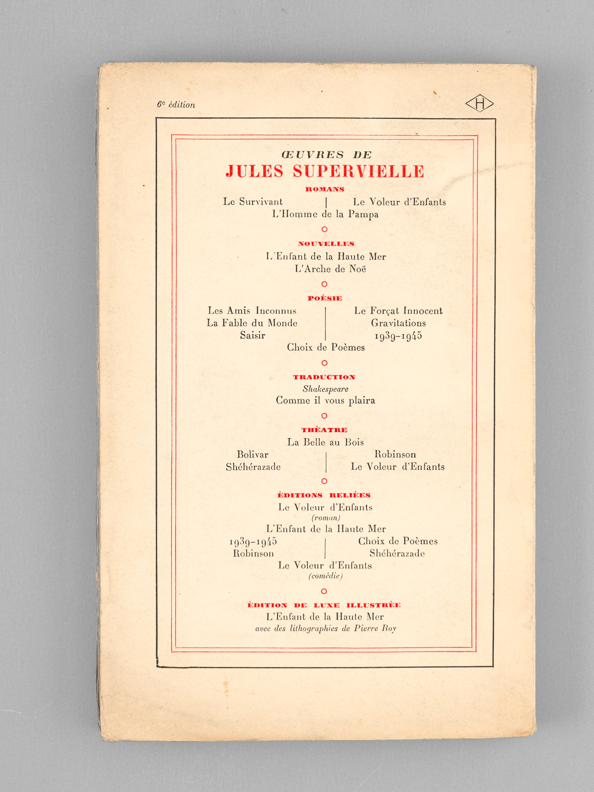 1 vol in-12 br., NRF Gallimard, Paris, 1949, 181 pp.