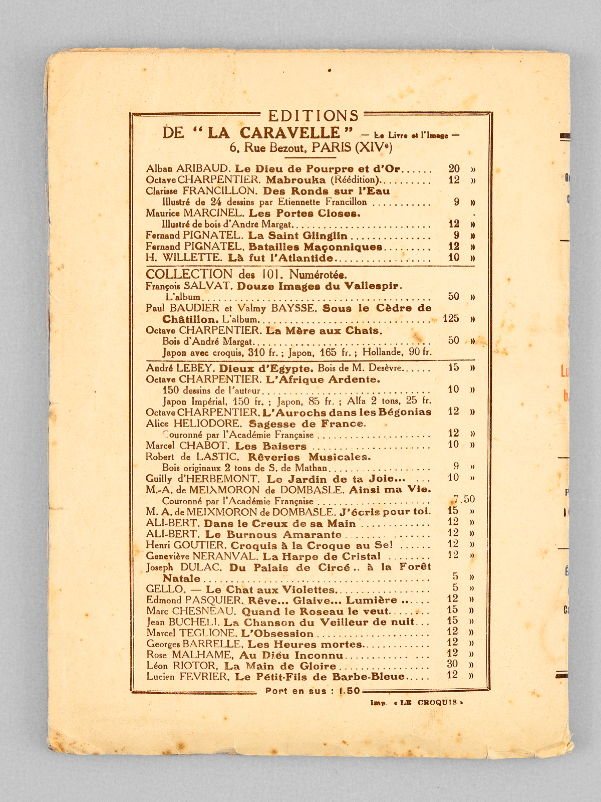 1 vol. in-12 br., Editions de « La Caravelle », Le Livre & l'Image, Paris, 1932, 89 pp.